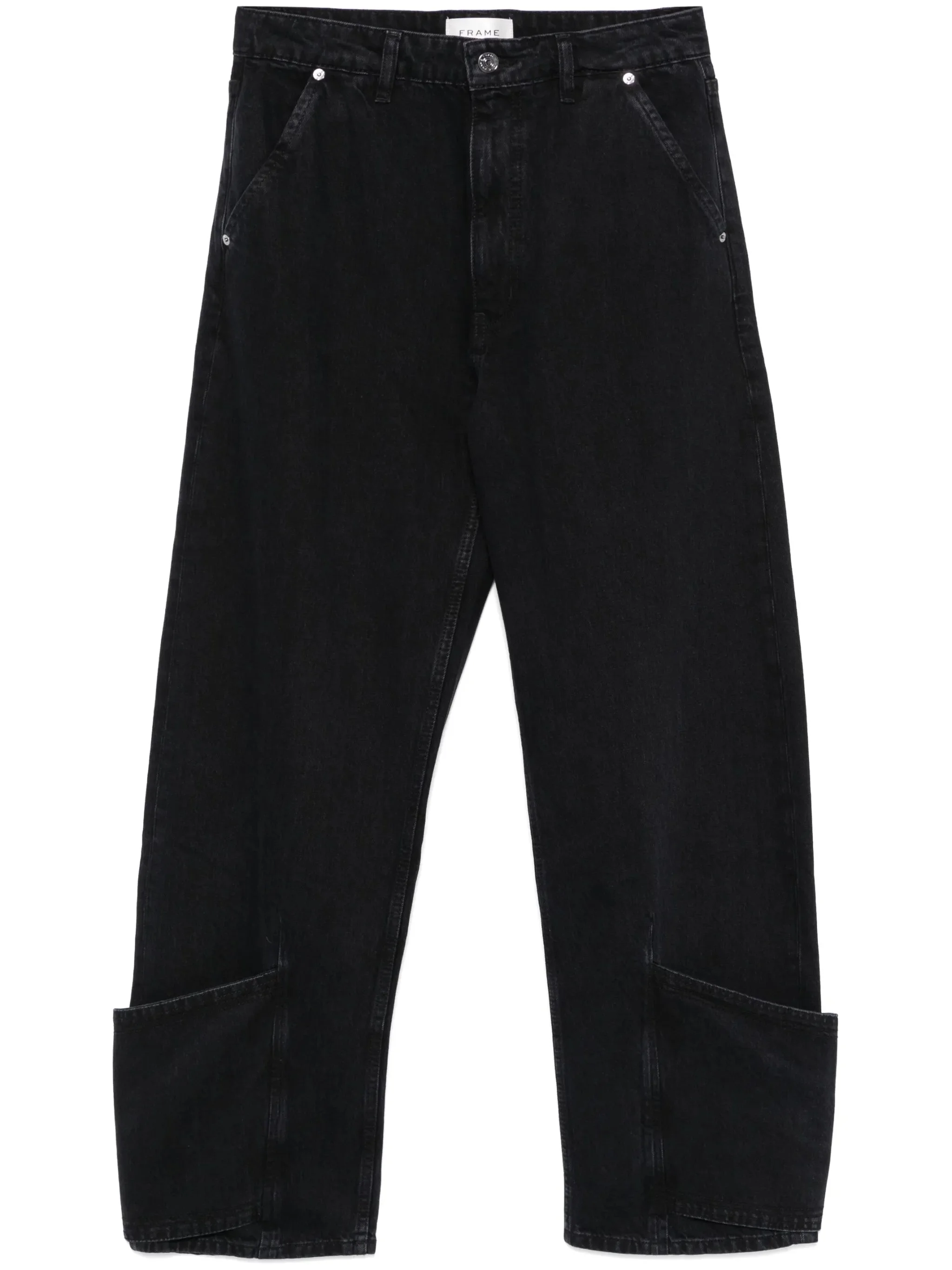 - black - organic cotton - denim - front button and zip fastening - belt loops - two diagonal pockets to the sides - two rear patch pockets - mid-rise - straight leg Materials & Product Care Lining: Cotton 35%, Polyester 35%, Recycled Cotton 30% Outer: Organic Cotton 100% Size & Fit - Designed with a wide leg cut, these jeans allow for a close fit at the waist and offer a loose and roomy fit over the leg - Sturdy and hard-wearing, this denim piece offers no stretch - The model is 1.80 m wearing size 27.