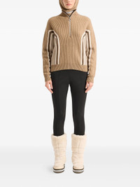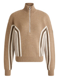 - beige - ribbed knit - half-zip fastening - long sleeves - colour-block panel - high neck Materials & Product Care Wool 100%