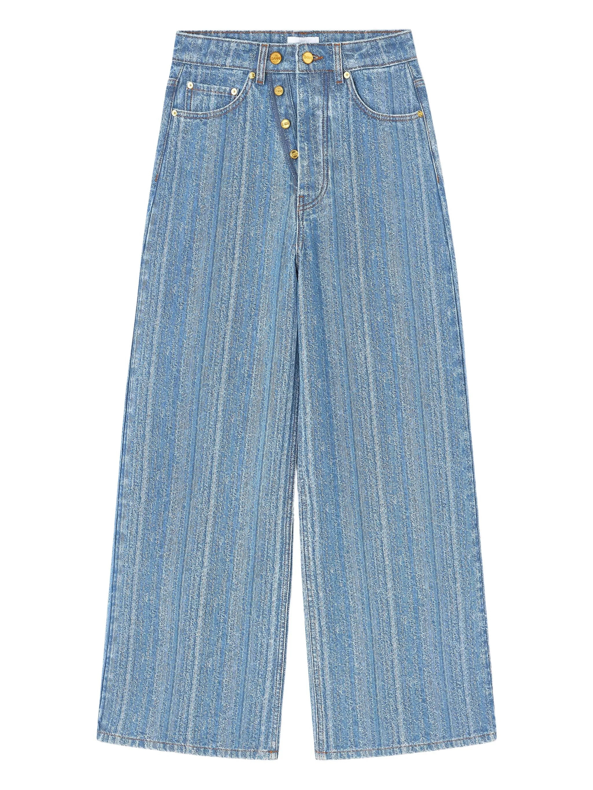 - light blue - deconstructed fastening - concealed fastening - five-pocket design - textured denim Materials & Product Care Fabric 100%