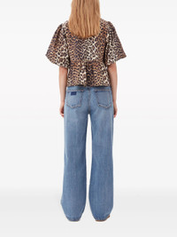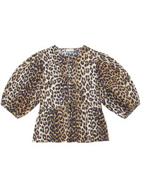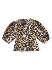 LEOPARD COTTON POPLIN PEPLUM TIE BLOUSE
