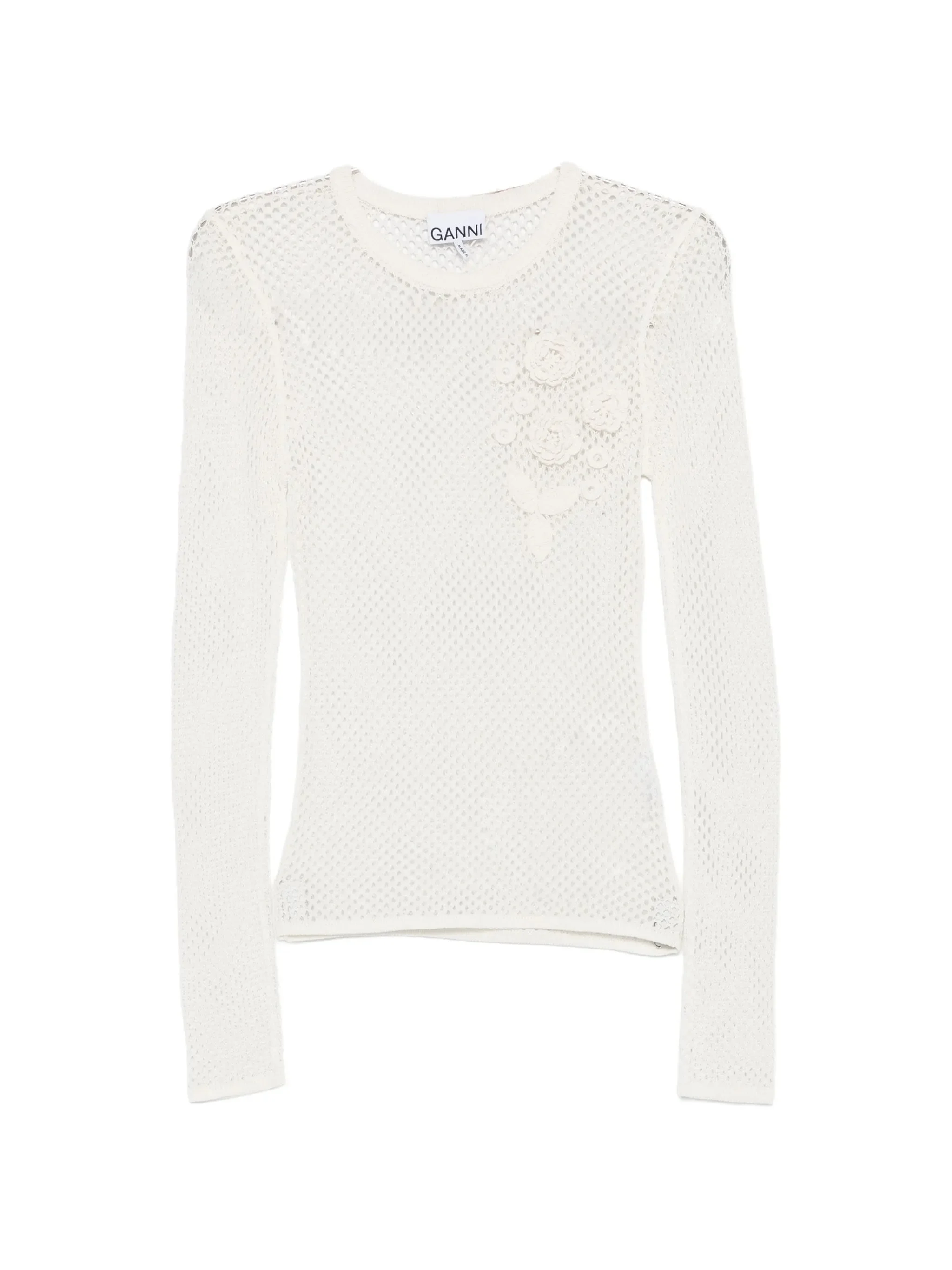 - white - mesh - pointelle detail - long sleeves - round neck Materials & Product Care Cotton 100% Size & Fit - The model is 1.78 m wearing size S.