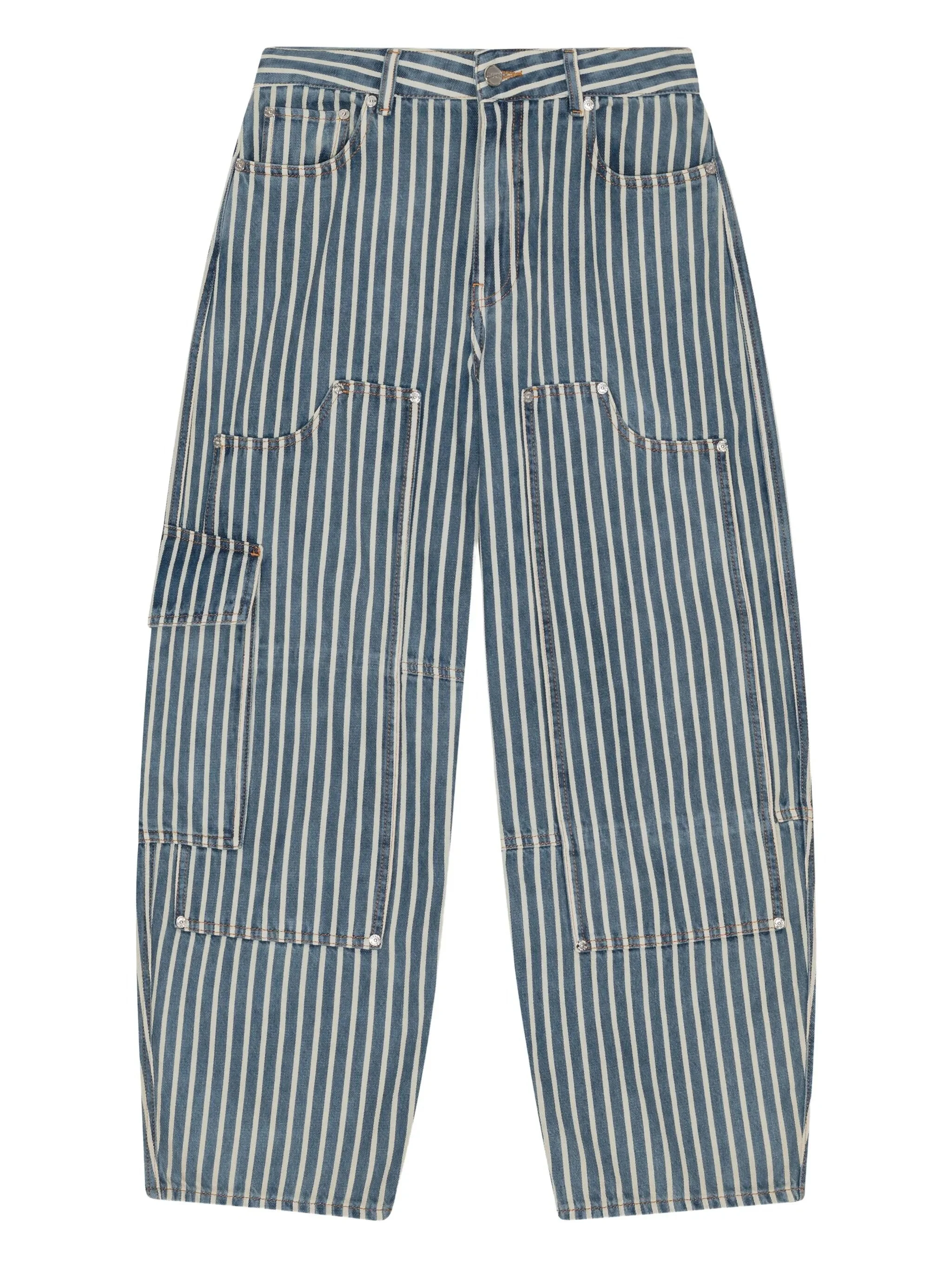 - indigo blue - concealed fly and button fastening - classic five pockets - side cargo pocket - panelled design Materials & Product Care Fabric 100%