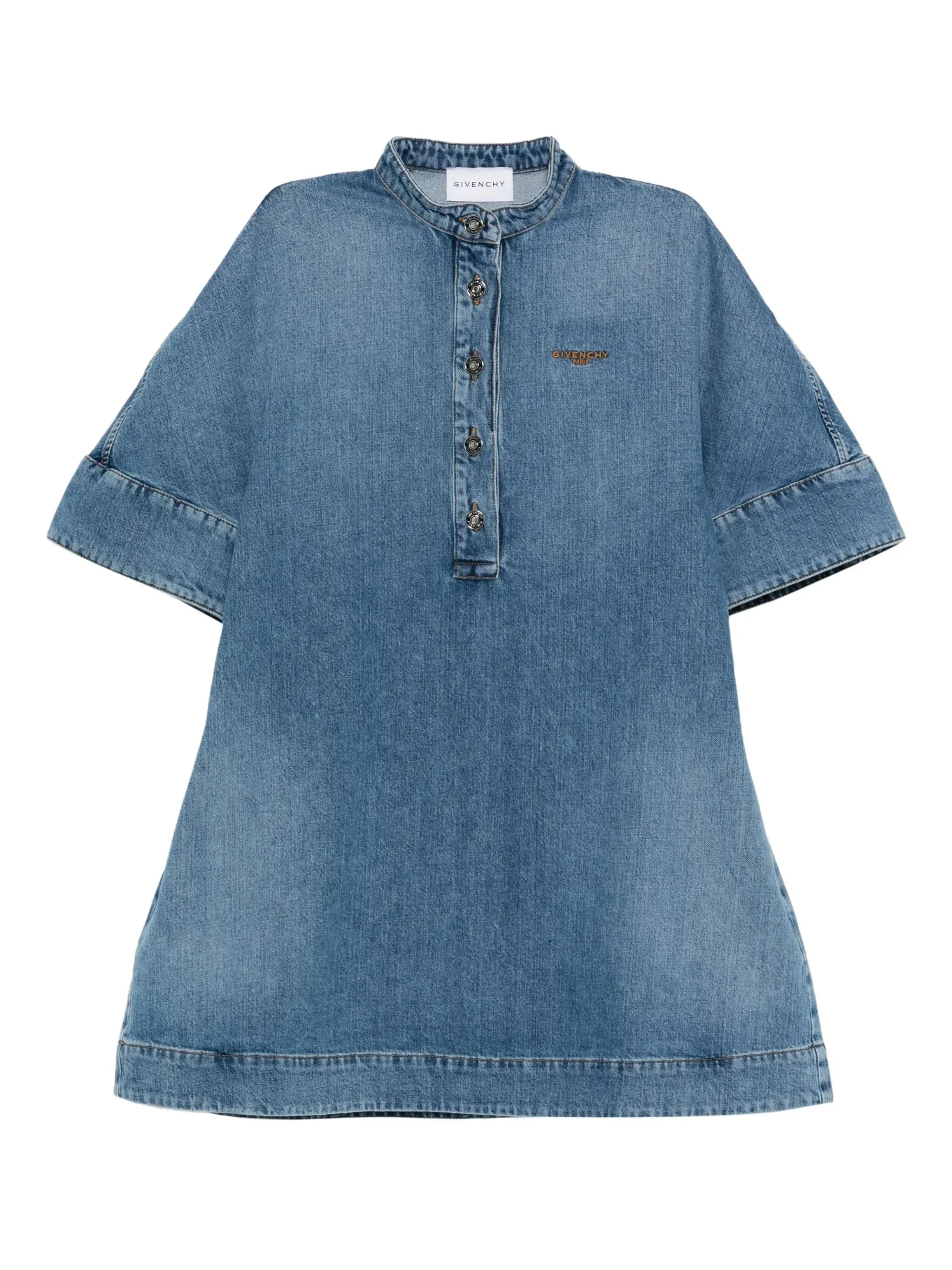 - medium blue - cotton - short sleeves - mock neck - A-line - embroidered logo Materials & Product Care Cotton 100%
