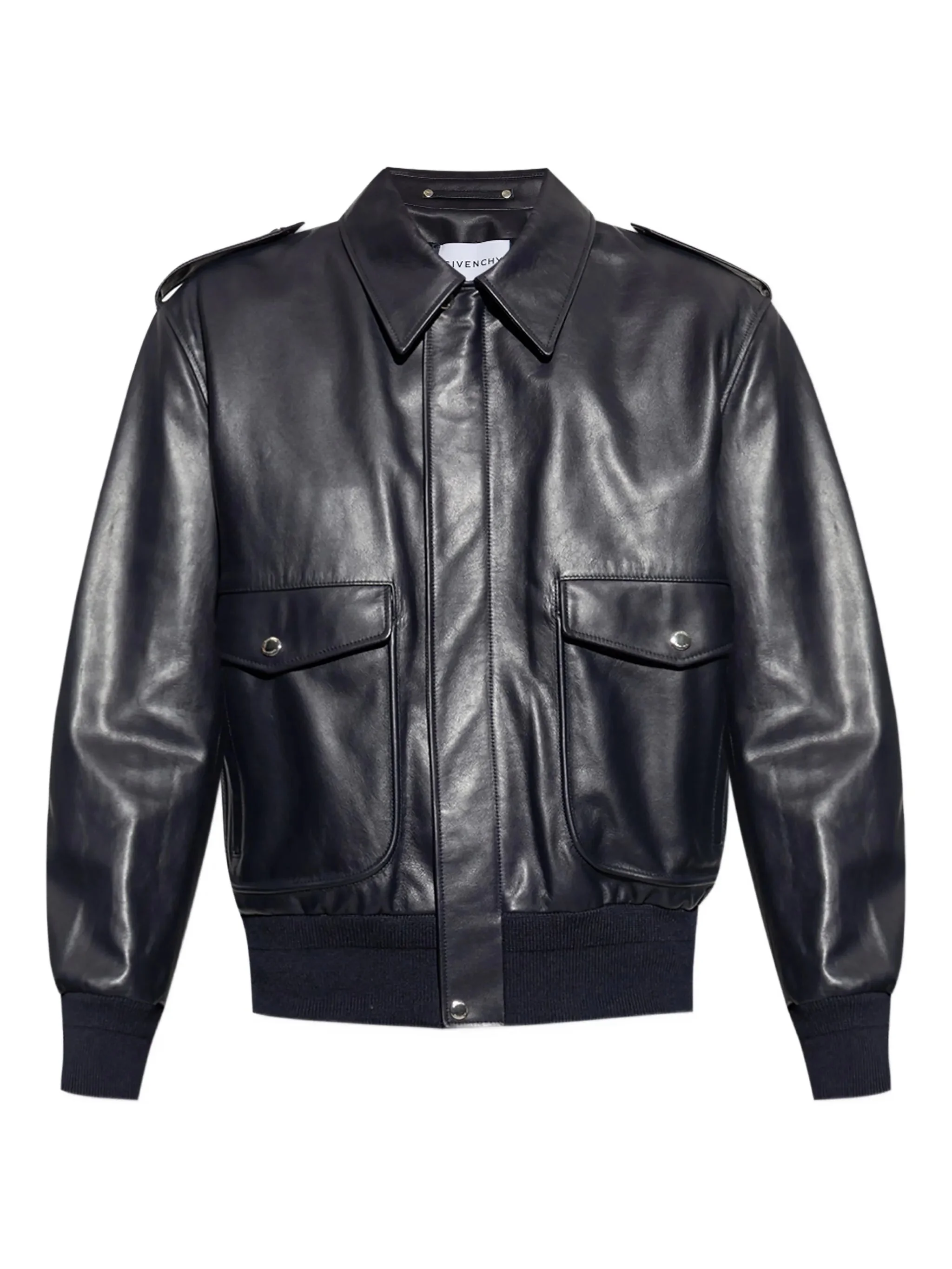- black - front flap pockets - ribbed hem - front zip fastening - classic collar Materials & Product Care Lining: viscose 100% Outer: Calf Leather 100%