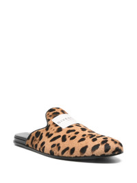 LABEL FLAT MULES IN LEATHER WITH LEOPARD PRINT