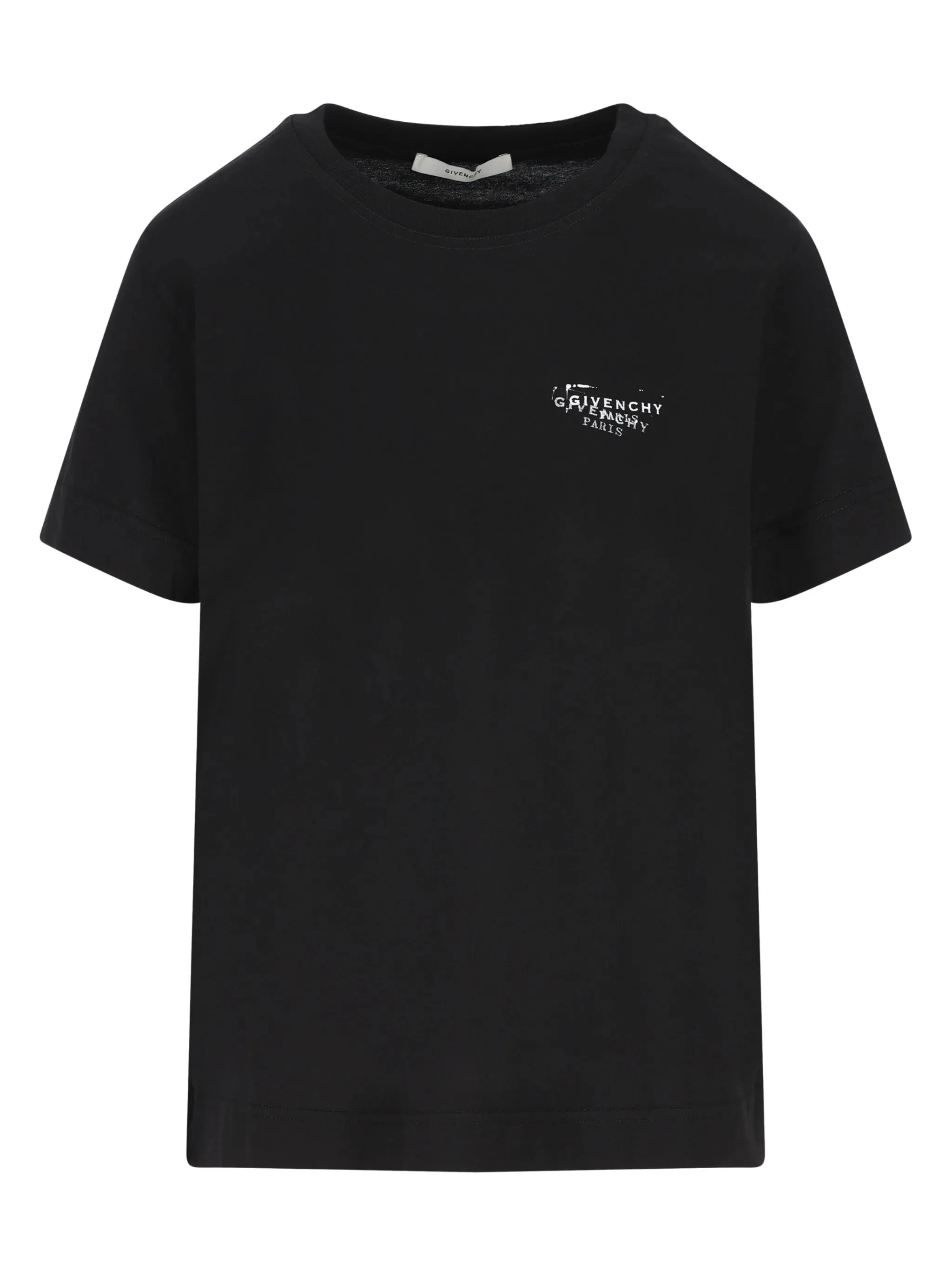 - black - logo-print front - graphic-print back - crew-neck - short-sleeves - ribbed neck Materials & Product Care Cotton 100%