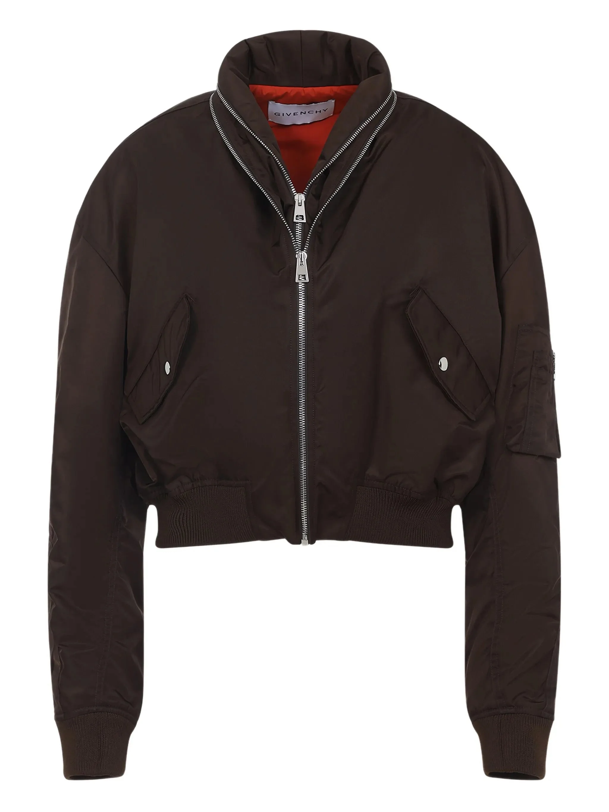 - brown - zip fastening - ribbed hem - welt pockets - stand collar - sleeve pocket Materials & Product Care Polyamide 100%