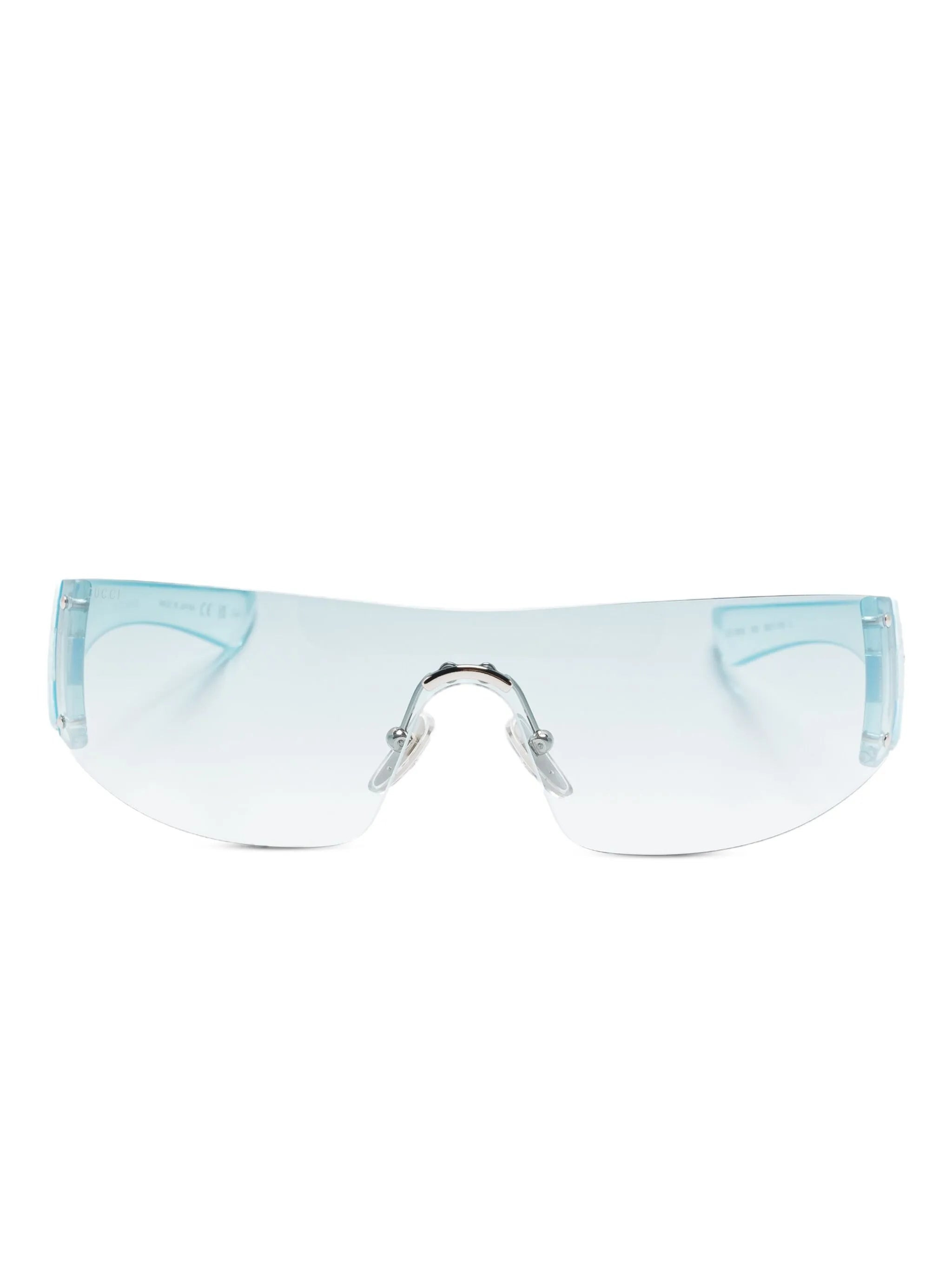 - light blue - shield frame - crystal embellishments - gradient lenses - silver-tone metal details - These glasses come with a protective case. Materials & Product Care Acetate 100%