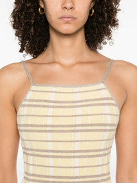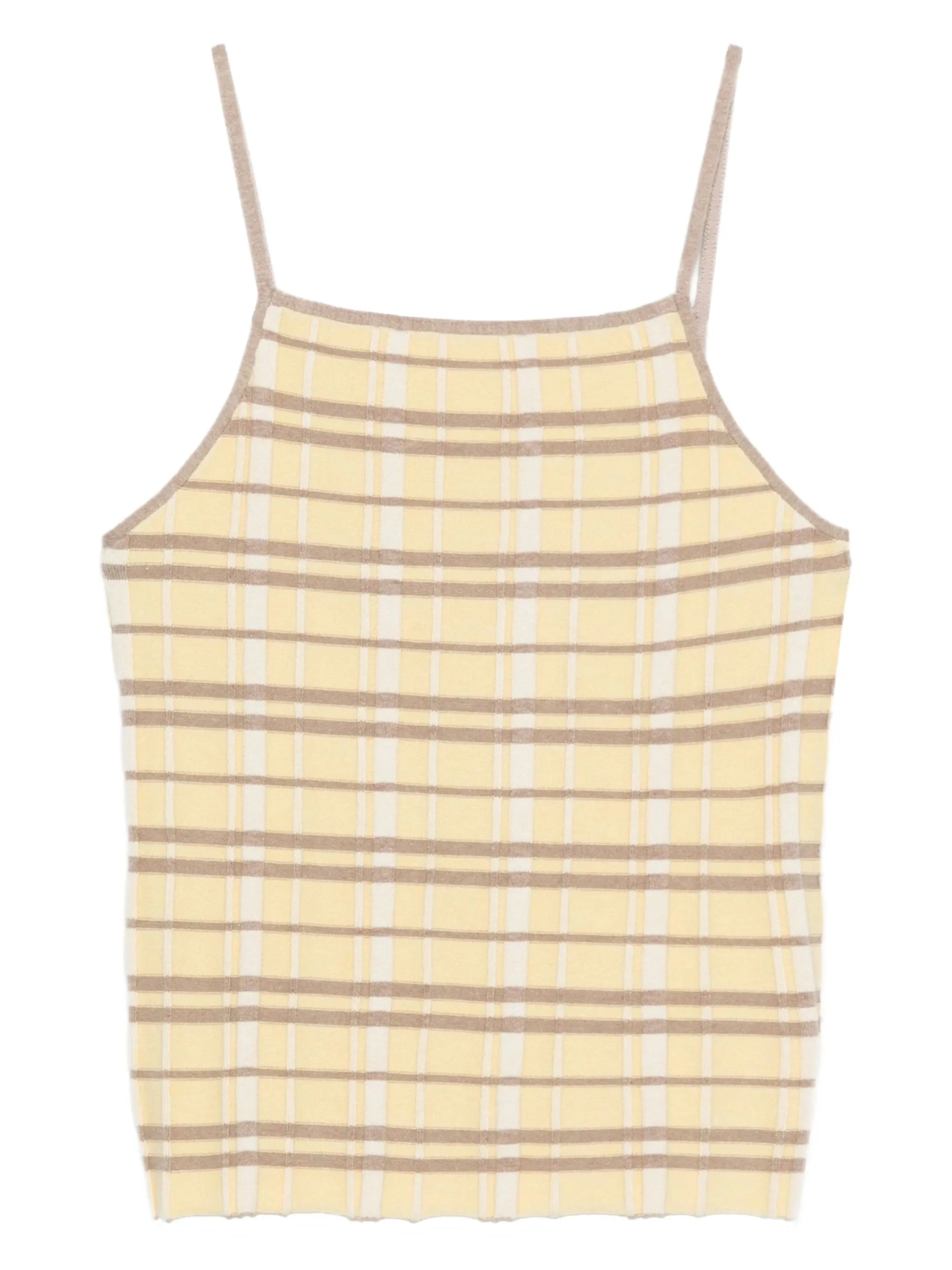 - yellow - checked pattern - spaghetti straps - ribbed texture - straight hem - sleeveless Materials & Product Care Elastane 2%, Linen/Flax 26%, Nylon 12%, Silk 60% Size & Fit - The model is 1.79 m wearing size S.