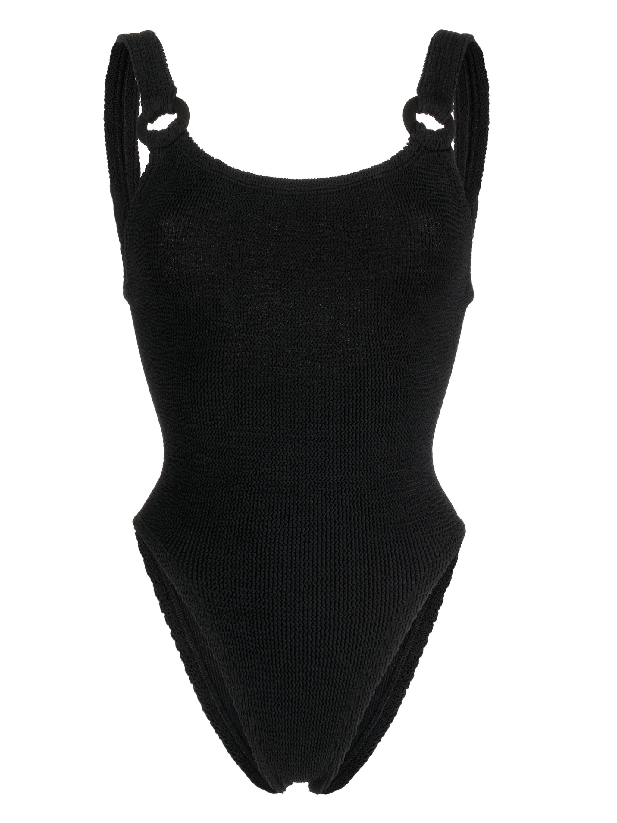 - black - stretch-design - towelling finish - chunky hoop design - scoop neck - thick shoulder straps - open back - finished edge - Be mindful to try on swimwear over your own garments. Materials & Product Care Elastane 3%, Polyamide 97%