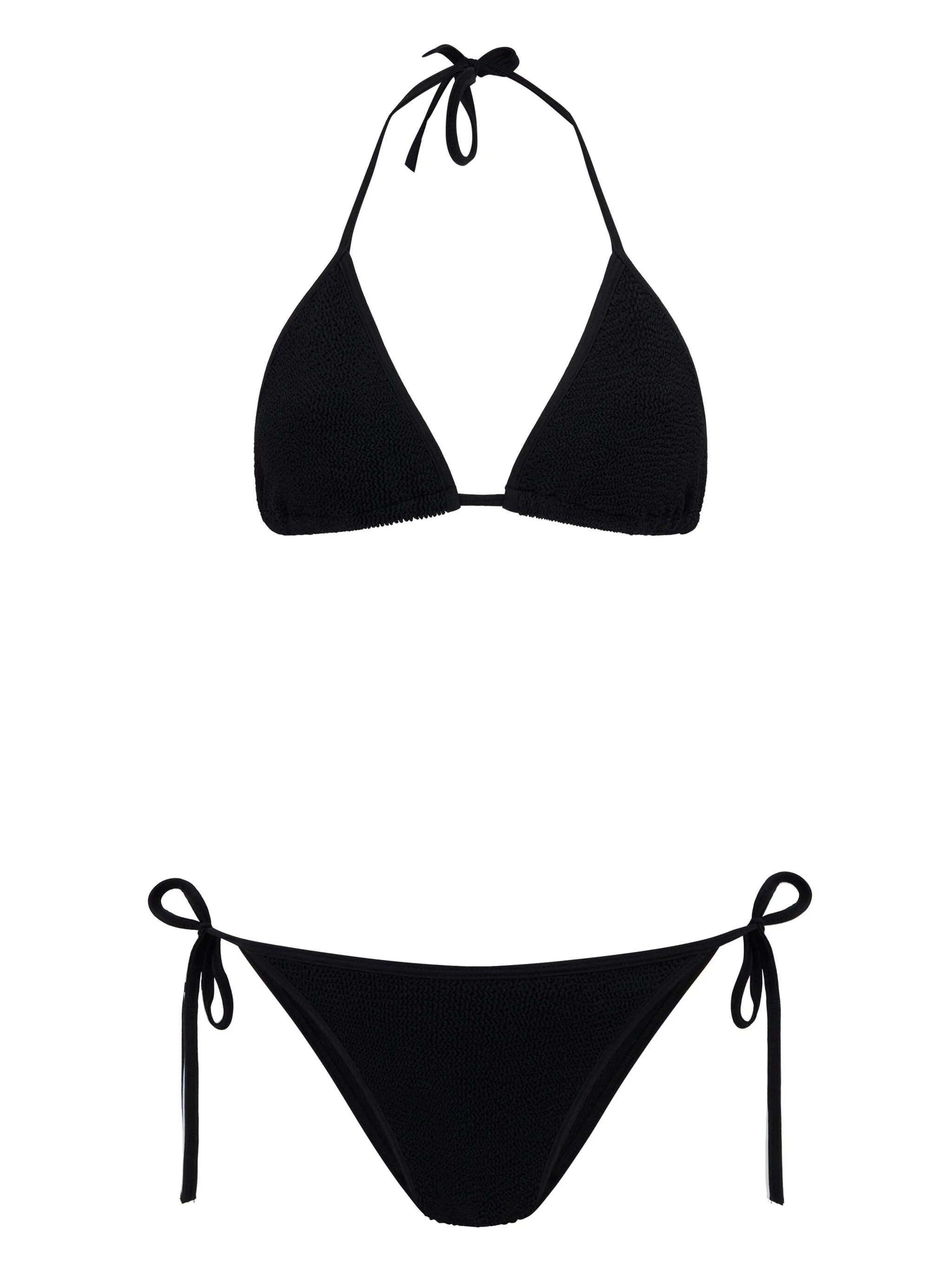 - black - stretch-design - smocked texture - triangle cup - halterneck tie fastening - rear tie fastening - side-tie bottoms - high cut - Be mindful to try on swimwear over your own garments. Materials & Product Care Elastane 3%, Polyamide 97%