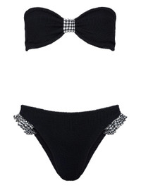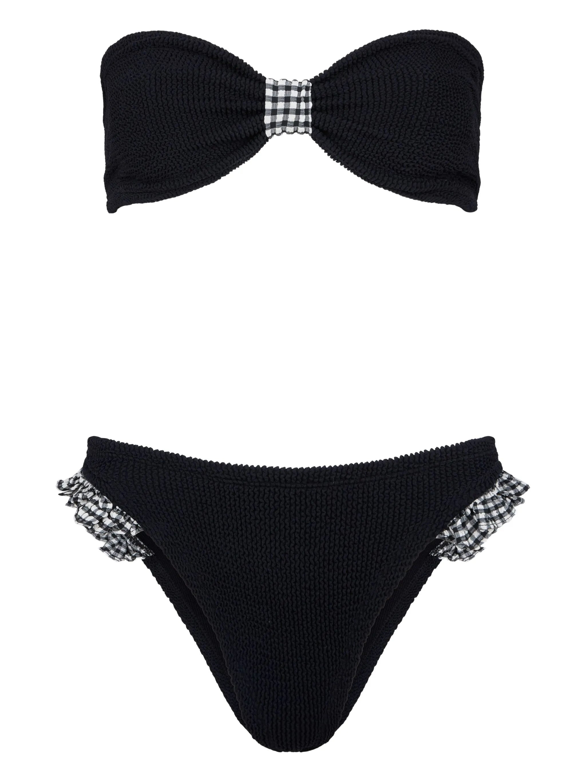 Jean ruffled gingham-trimmed seersucker bandeau bikini Black