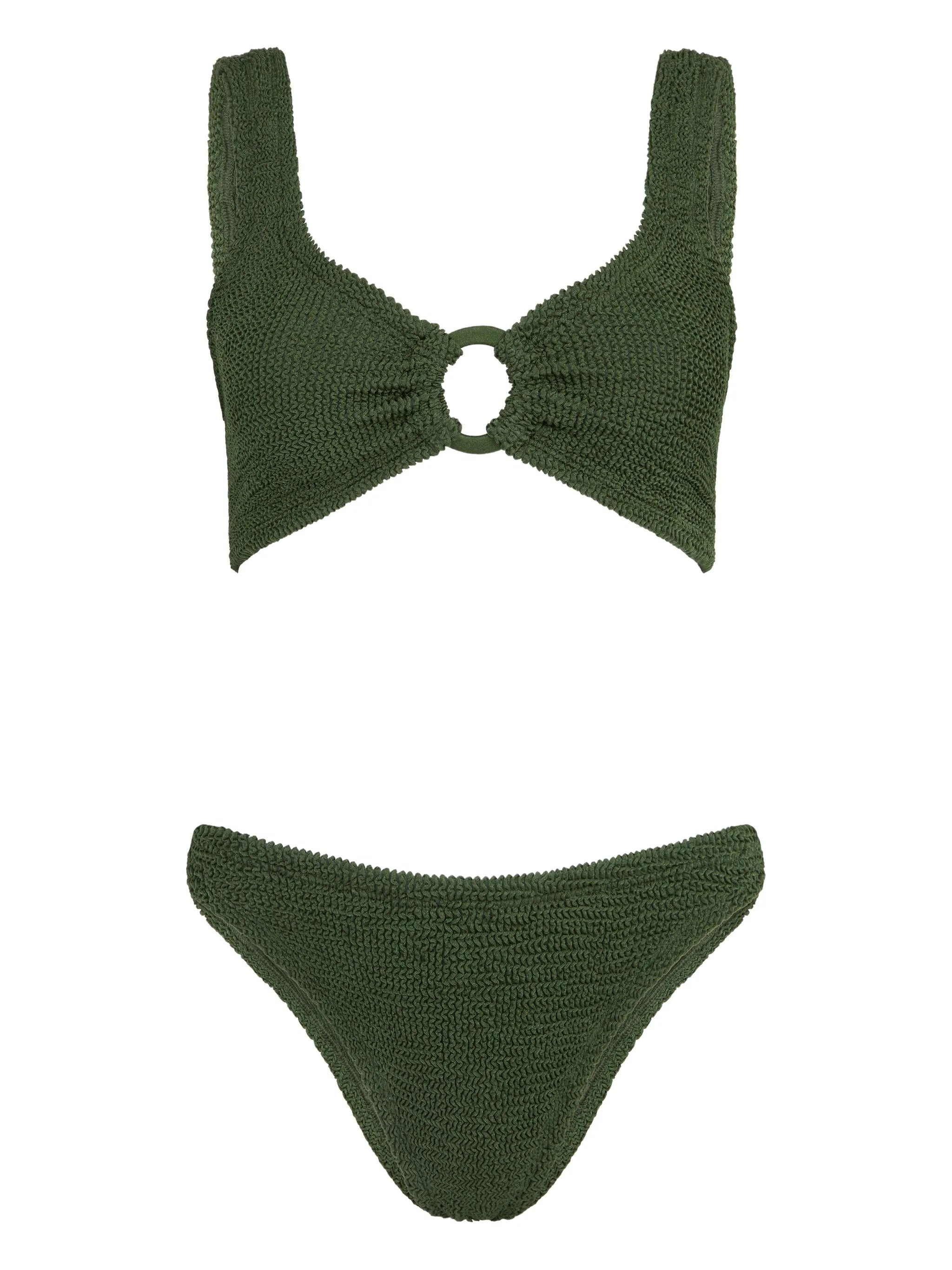 Julia embellished seersucker bikini Forest green