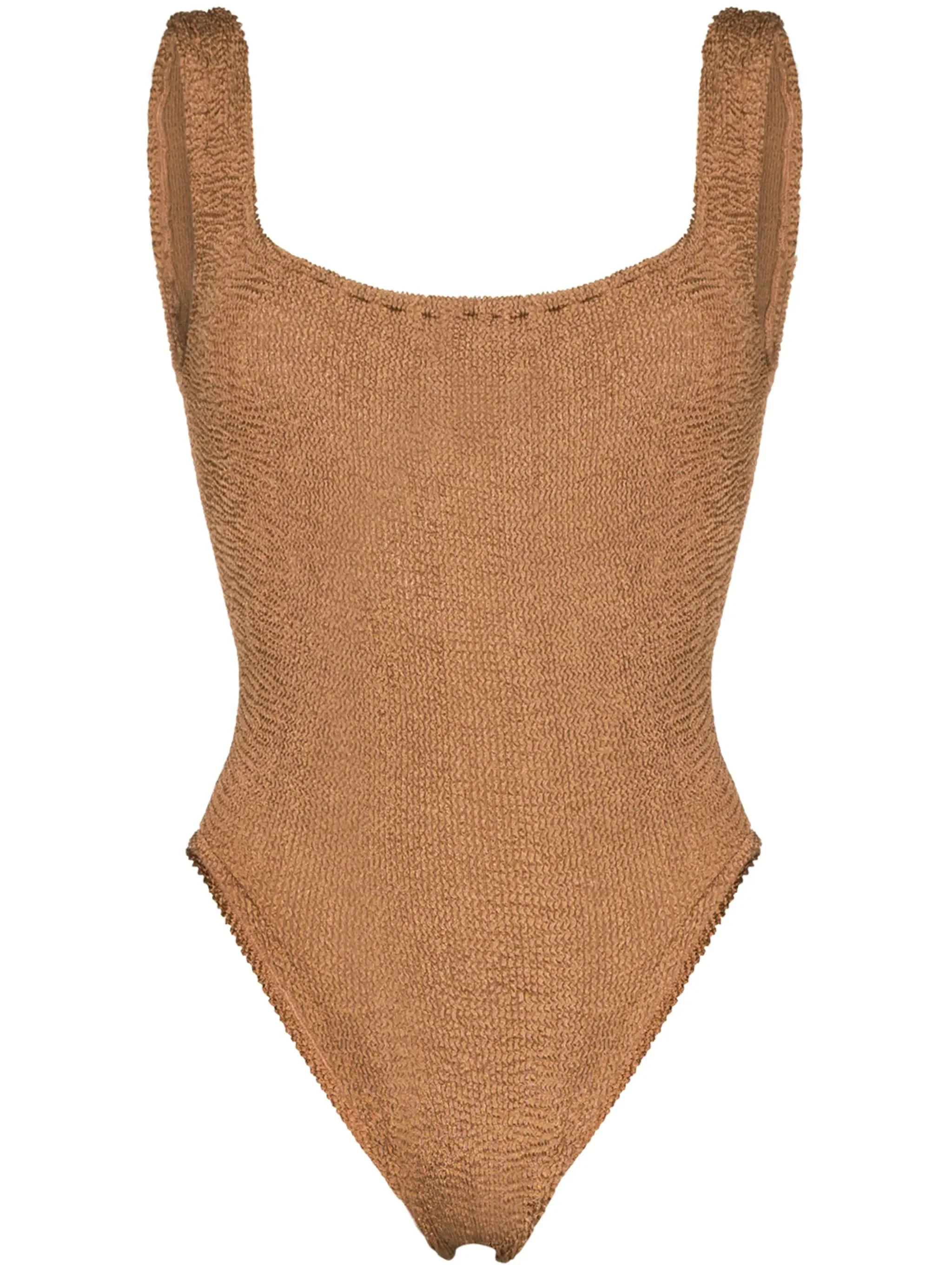 - brown - Be mindful to try on swimwear over your own garments - crinkled finish - square neck - open back - sleeveless Materials & Product Care Elastane 12%, Nylon 88% Size & Fit - The model is 1.79 m wearing size OS.