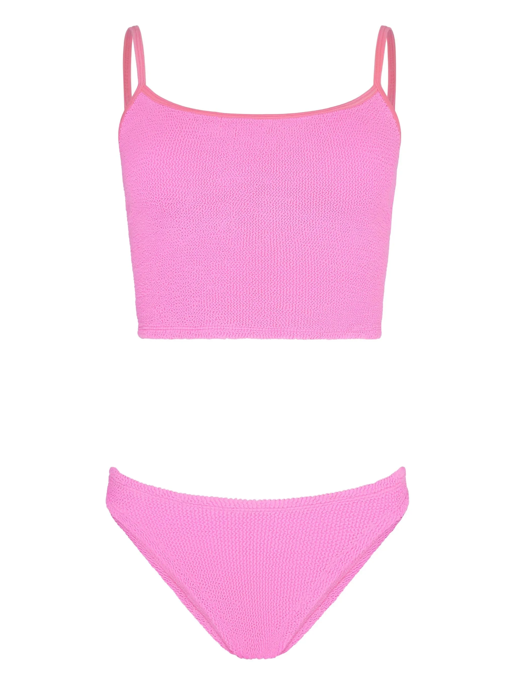 - pink - spaghetti straps - classic bottoms - crinkled finish - Be mindful to try on swimwear over your own garments. Materials & Product Care Elastane 3%, Polyamide 97%