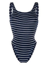 - navy blue/optical white - stretch-design - crinkled finish - horizontal stripe pattern - scoop neck - square neck - sleeveless - open back - high cut - Be mindful to try on swimwear over your own garments. Materials & Product Care Lycra 3%, Polyamide 78%, Recycled Polyester 19%