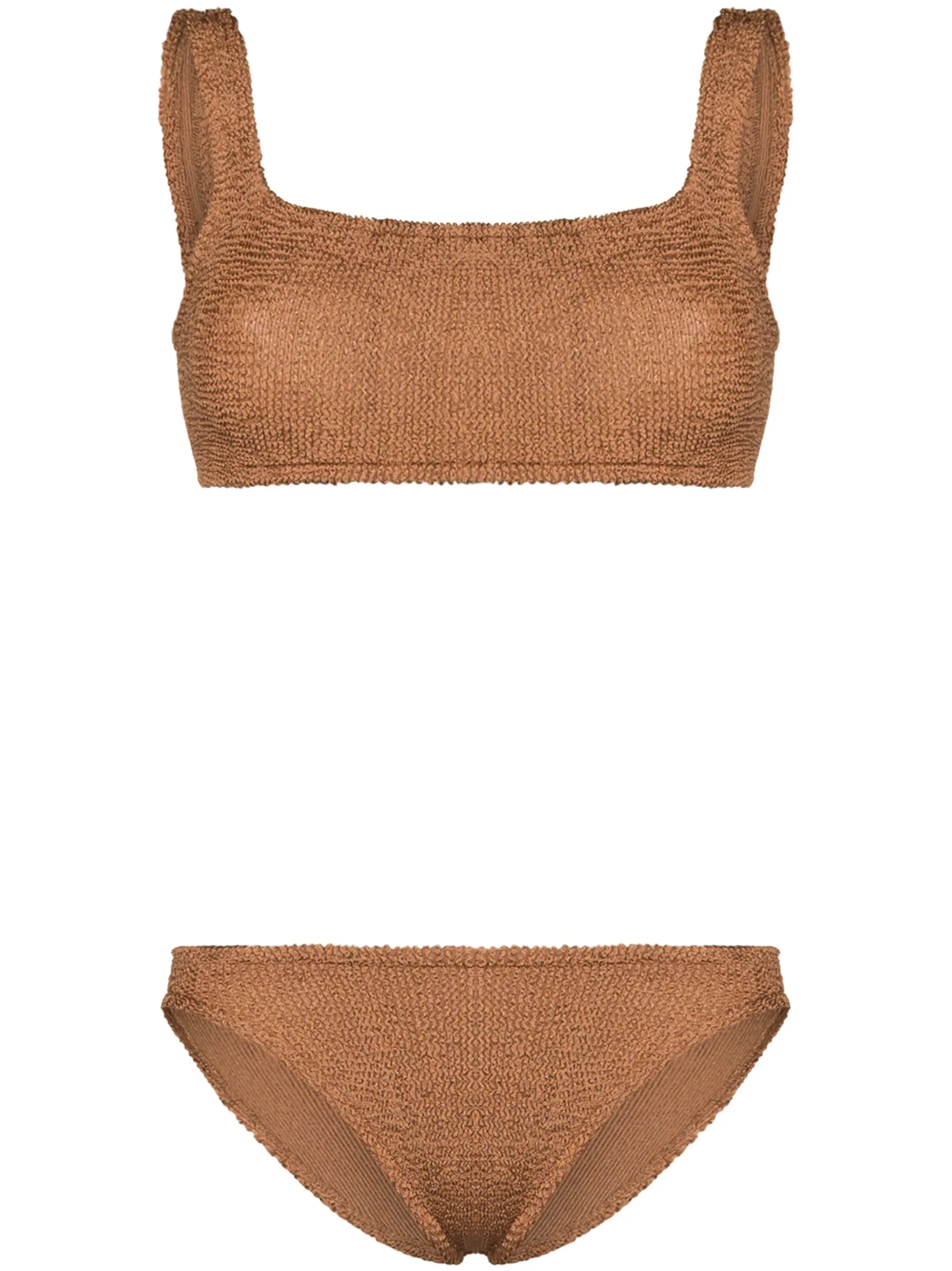 - cocoa-brown - crinkled finish - bandeau style - square neck - sleeveless - classic bottoms - stretch-design - Be mindful to try on swimwear over your own garments. Materials & Product Care Elastane 12%, Nylon 88% Size & Fit - The model is 1.75 m wearing size OS.