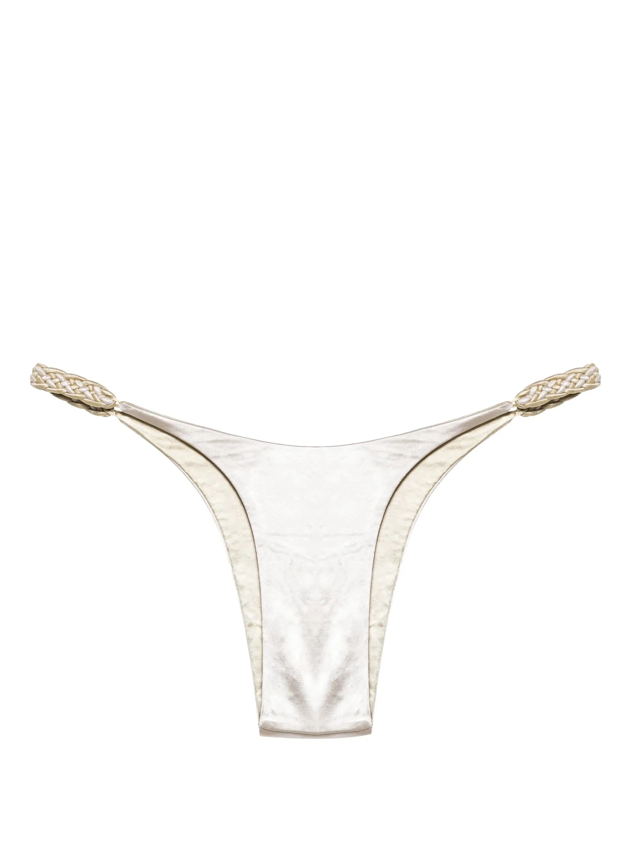 - silver-tone/light gold-tone - stretch-design - reversible - metallic sheen - braided straps - low-rise - high cut - Be mindful to try on swimwear over your own garments. Materials & Product Care Lining: Elastane 10%, Polyester 90% Outer: Elastane 25%, Nylon 75%