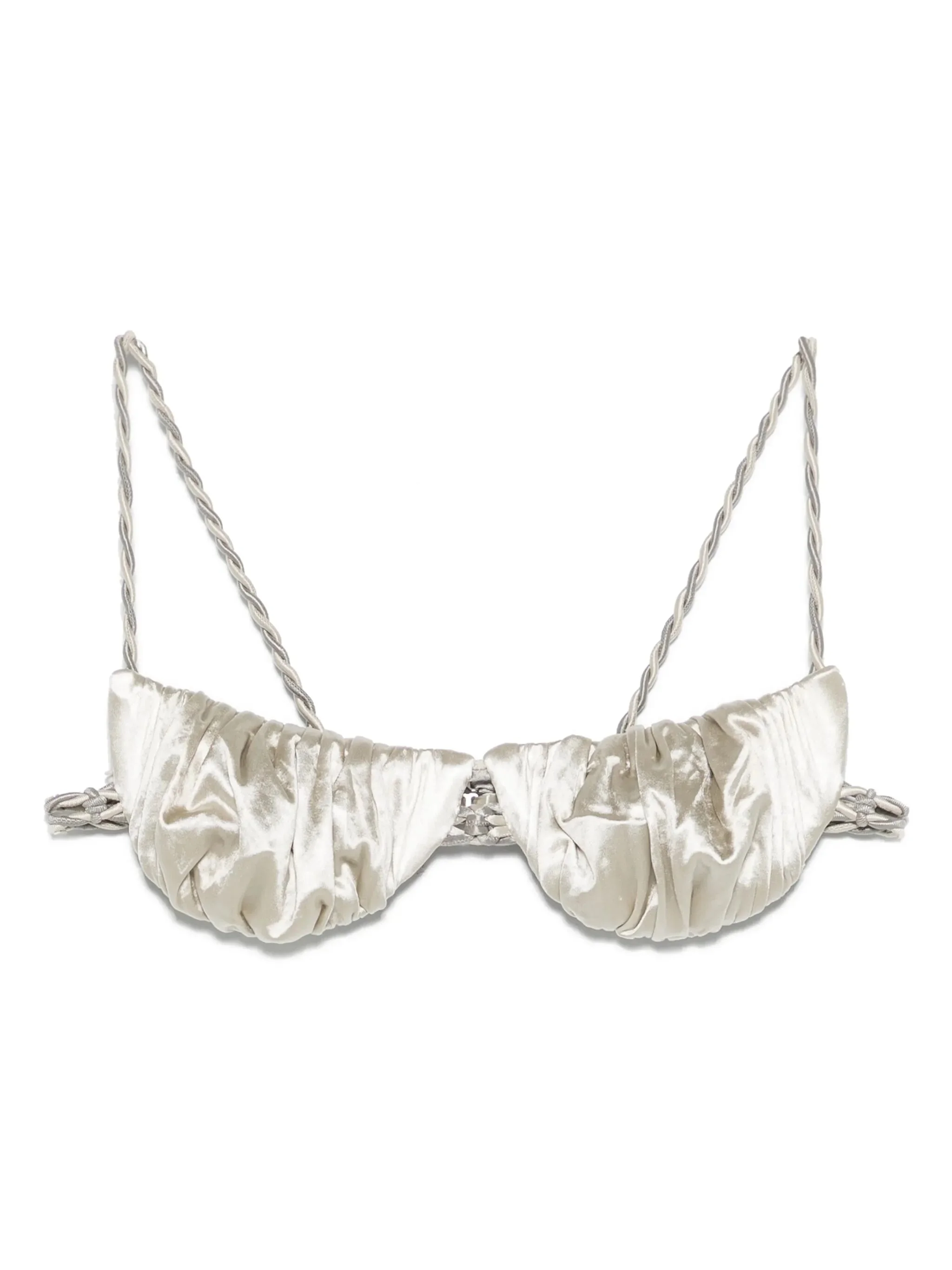 - light grey - rear hook and eye fastening - double-strap design - full lining - Be mindful to try on swimwear over your own garments. Materials & Product Care Lining: Polyester 90%, Spandex/Elastane 10% Outer: Nylon 75%, Spandex/Elastane 25%