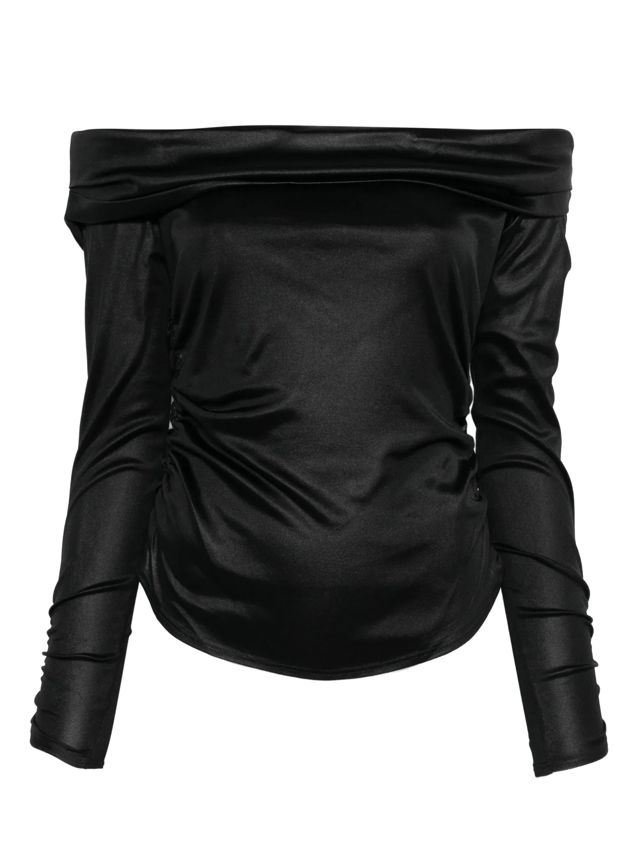 - black - off-shoulder neckline - ruched detailing - long sleeves - fitted bodice - straight hemline Materials & Product Care Fabric 100% Size & Fit - The model is 1.75 m wearing size 36.
