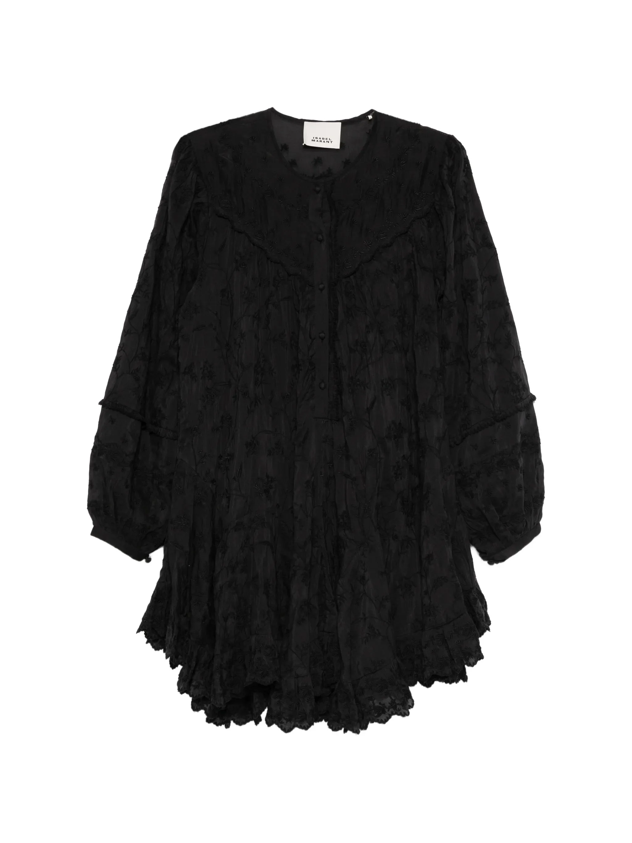 - black - floral detail - button fastening - ruffled hem - long sleeves - embroidered Materials & Product Care Lining: Silk 100% Outer: Cotton 73%, Silk 27% Size & Fit - The model is 1.73 m wearing size 36.