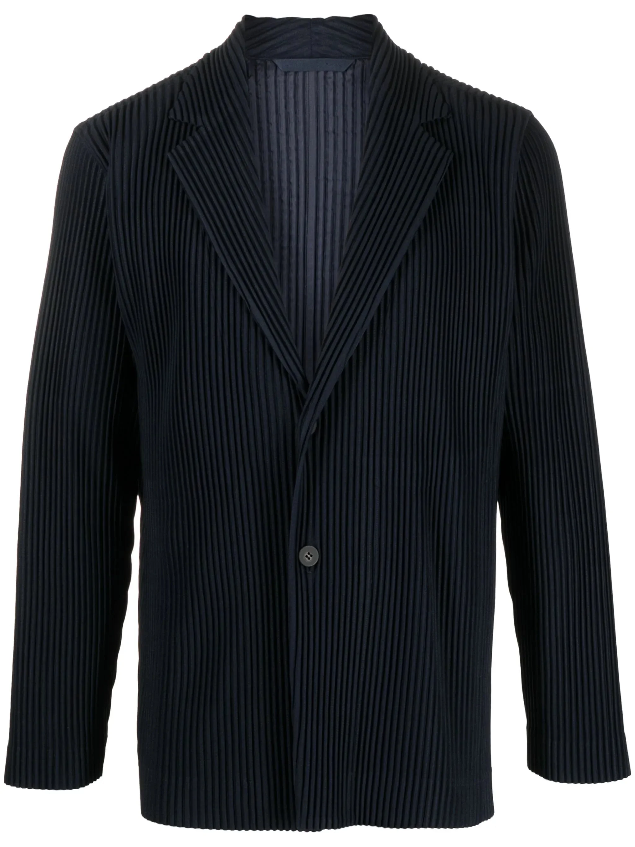 - navy blue - recycled polyester - fully pleated - notched lapels - front button fastening - long sleeves - straight hem Materials & Product Care Lining: Recycled Polyester 100% Outer: Recycled Polyester 100%