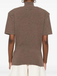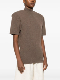 - brown - mock neck - short sleeves - wool-cashmere blend - ribbed knit Materials & Product Care Cashmere 10%, Merino 90% Size & Fit - The model is 1.80 m wearing size 36.