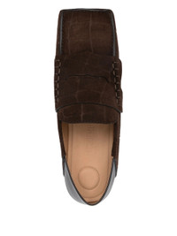 - cedar brown - branded insole - penny slot - embossed crocodile effect - square toe Materials & Product Care Suede 100%