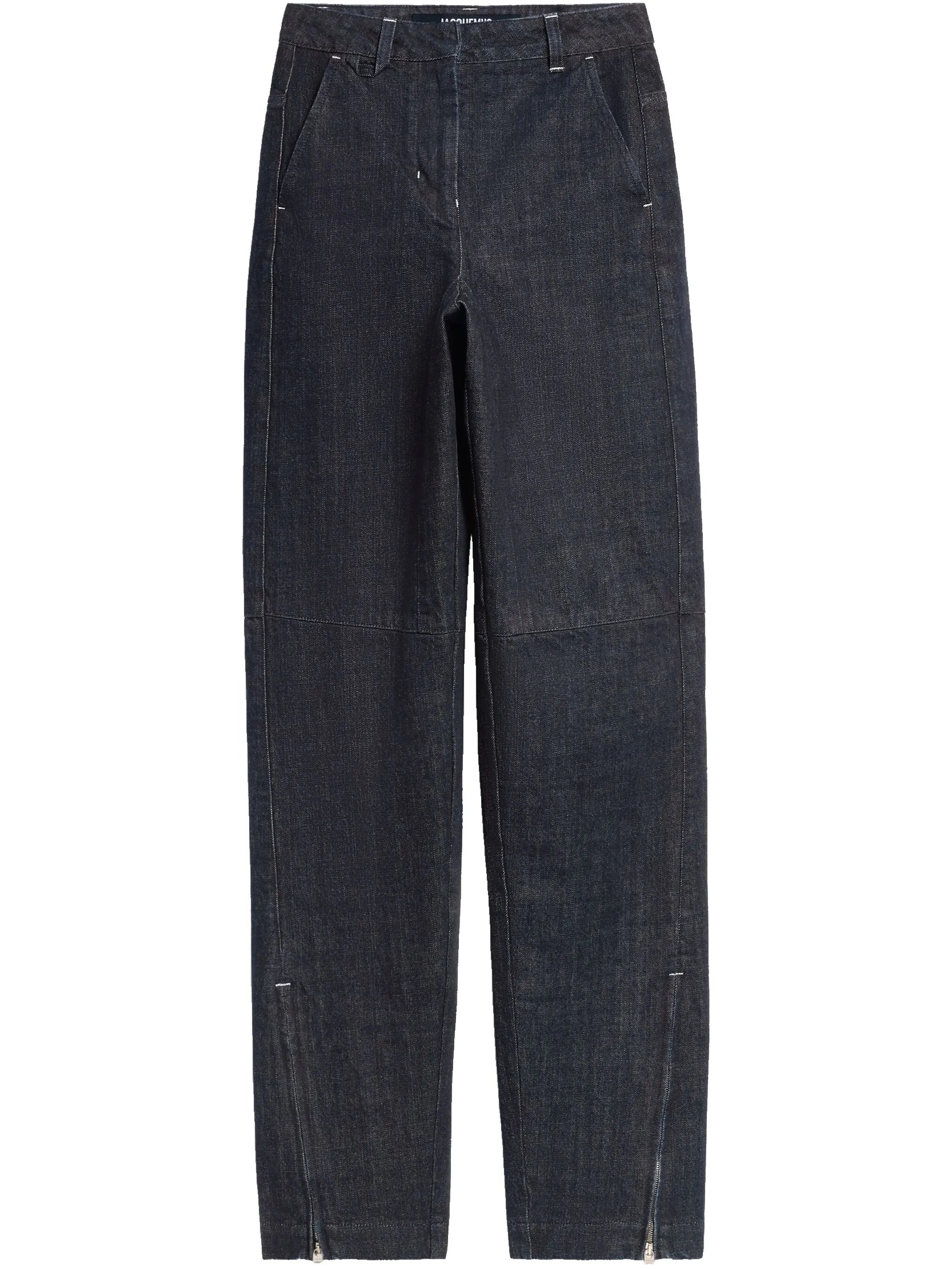 - navy blue - concealed front fastening - belt loops - two side slash pockets - ankle zips Materials & Product Care Lining: Cotton 35%, Polyester 65% Outer: Cotton 100%