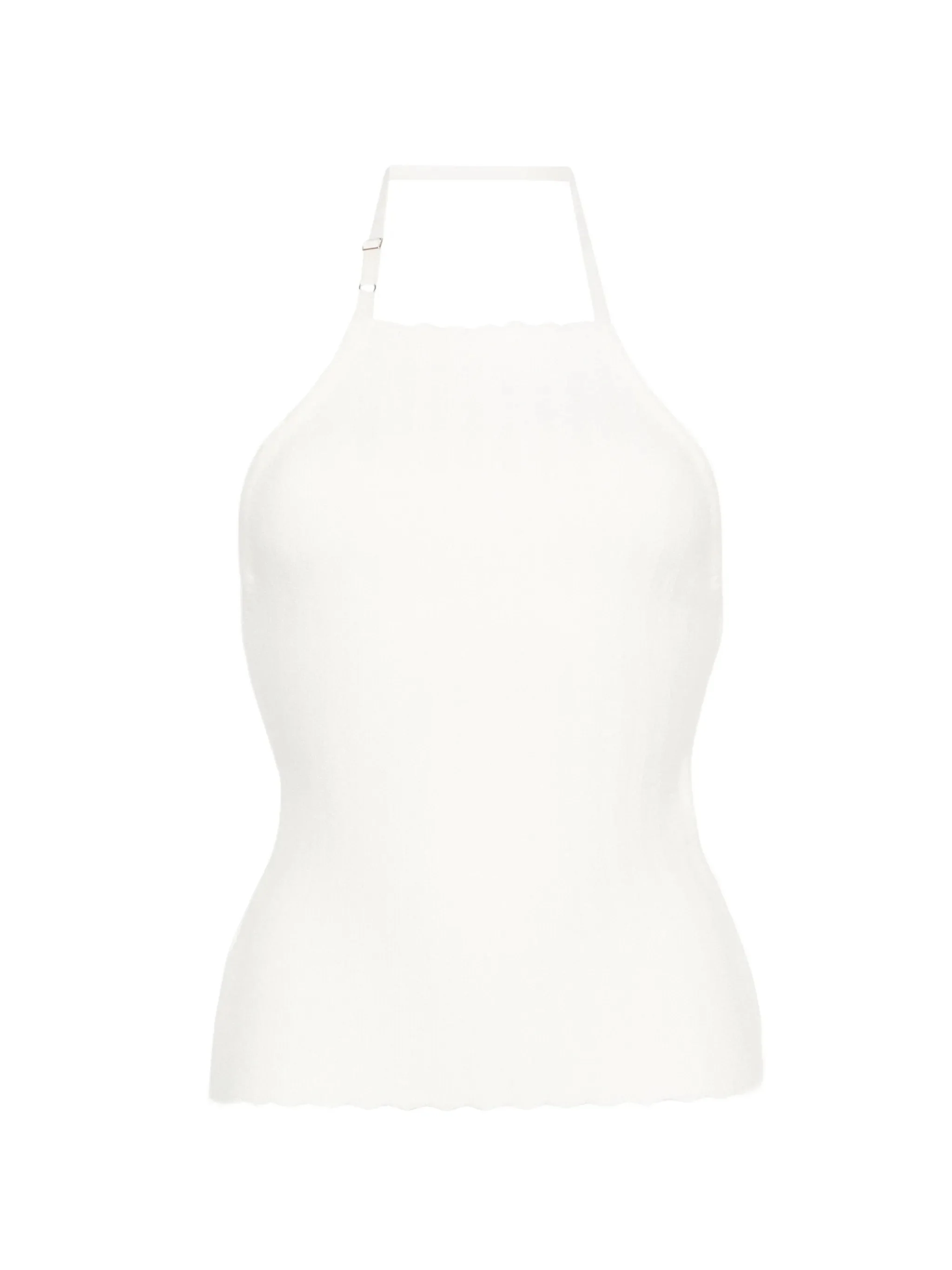 - off-white - scalloped hem - halterneck Materials & Product Care Polyester 12%, viscose 88% Size & Fit - The model is 1.78 m wearing size 36.