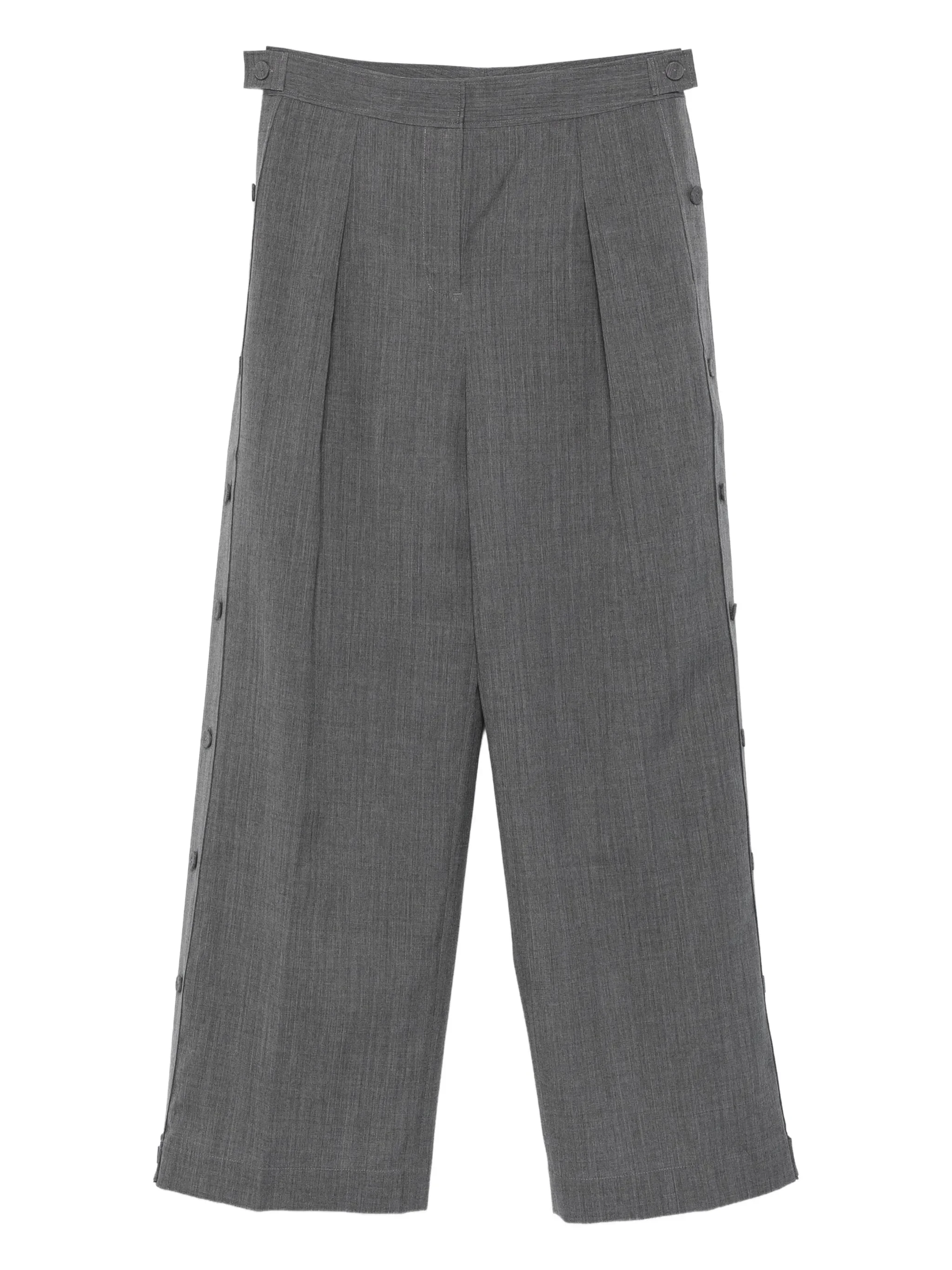 - charcoal grey - side button fastening - two rear patch pockets - pressed crease - pleat detailing Materials & Product Care Lining: viscose 100% Outer: Wool 100% Size & Fit - The model is 1.78 m wearing size 36.