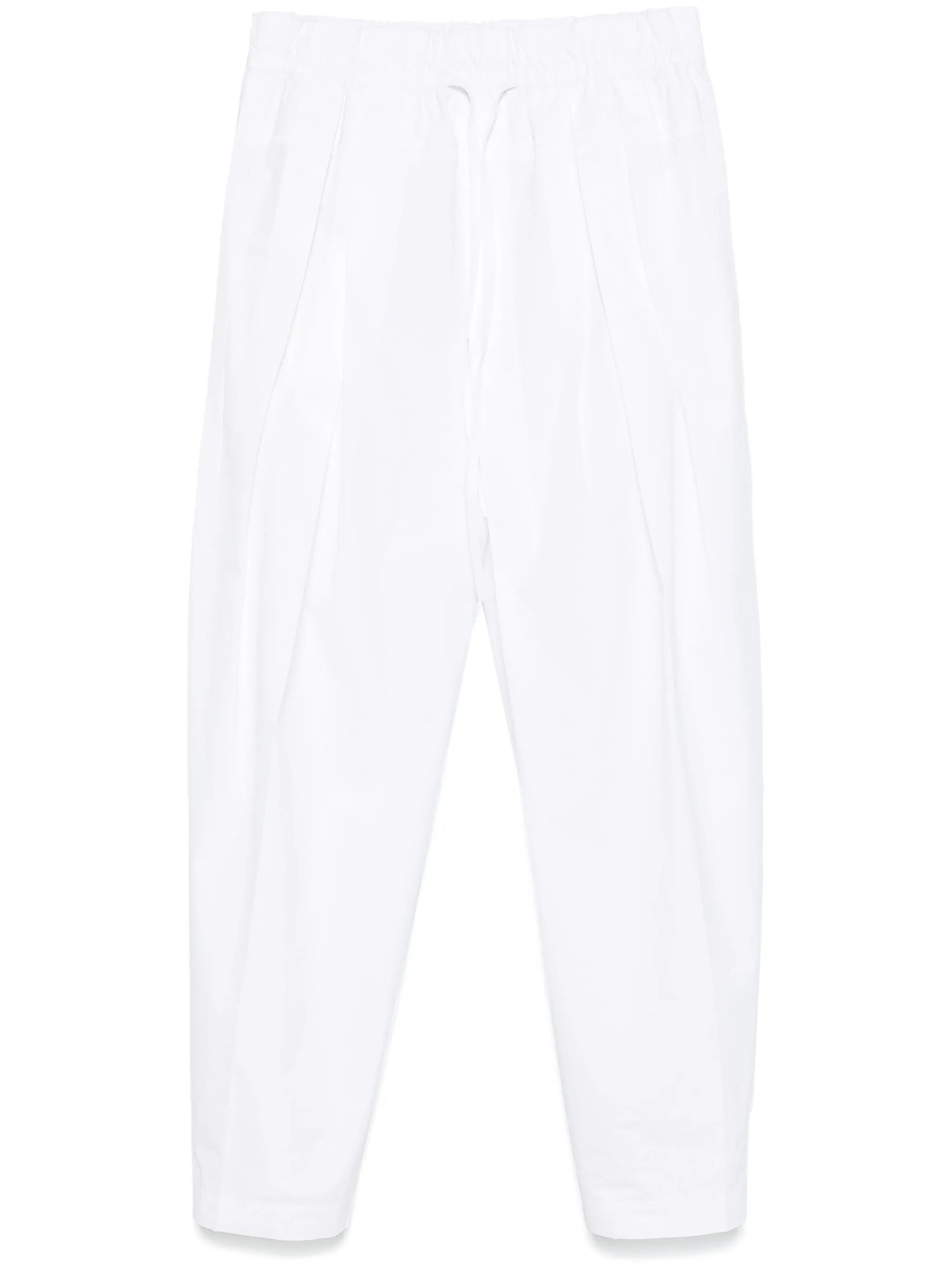 - white - elasticated drawstring waistband - two side inset pockets - pleat detailing - two rear patch pockets Materials & Product Care Lining: Cotton 100% Outer: Cotton 100% Size & Fit - Designed with a wide-leg cut, these trousers allow for a close fit at the waist and offer a loose and roomy fit over the leg - Made from a midweight non-stretch fabric - The adjustable tabs allow for fitted preferences - The model is 1.76 m wearing size 36.
