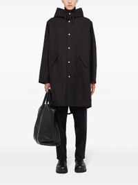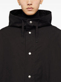 - black - cotton - drawstring hood - front press-stud and zip fastening - two side flap pockets - long sleeves - logo print to the rear - central rear vent Materials & Product Care Cotton 100% Size & Fit - The model is 1.88 m wearing size 48.