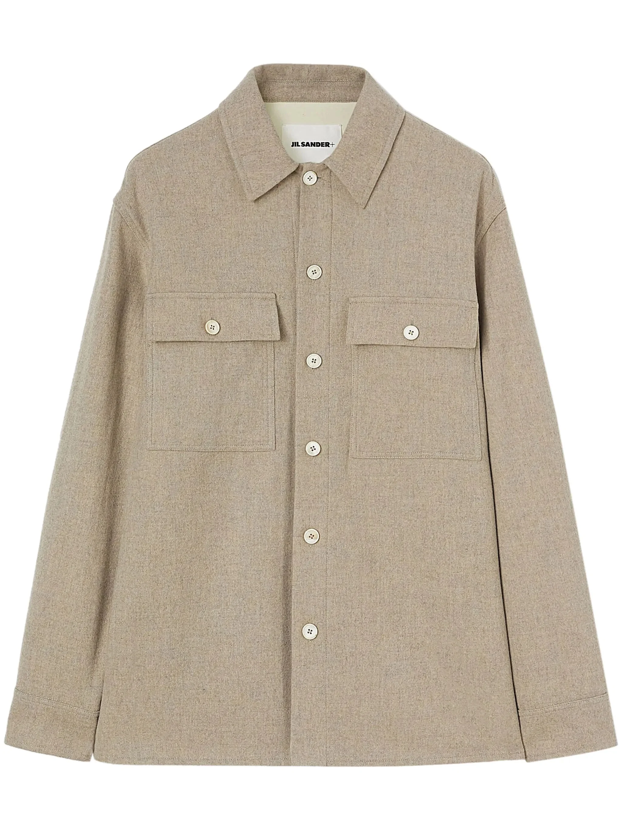 - sesame beige - virgin wool - flannel - melange effect - spread collar - front button fastening - drop shoulder - long sleeves - buttoned cuffs - two chest flap pockets - straight hem Materials & Product Care Virgin Wool 100% Size & Fit - Designed for a relaxed fit, this piece allows for comfort and movement when worn - Made from a midweight non-stretch fabric