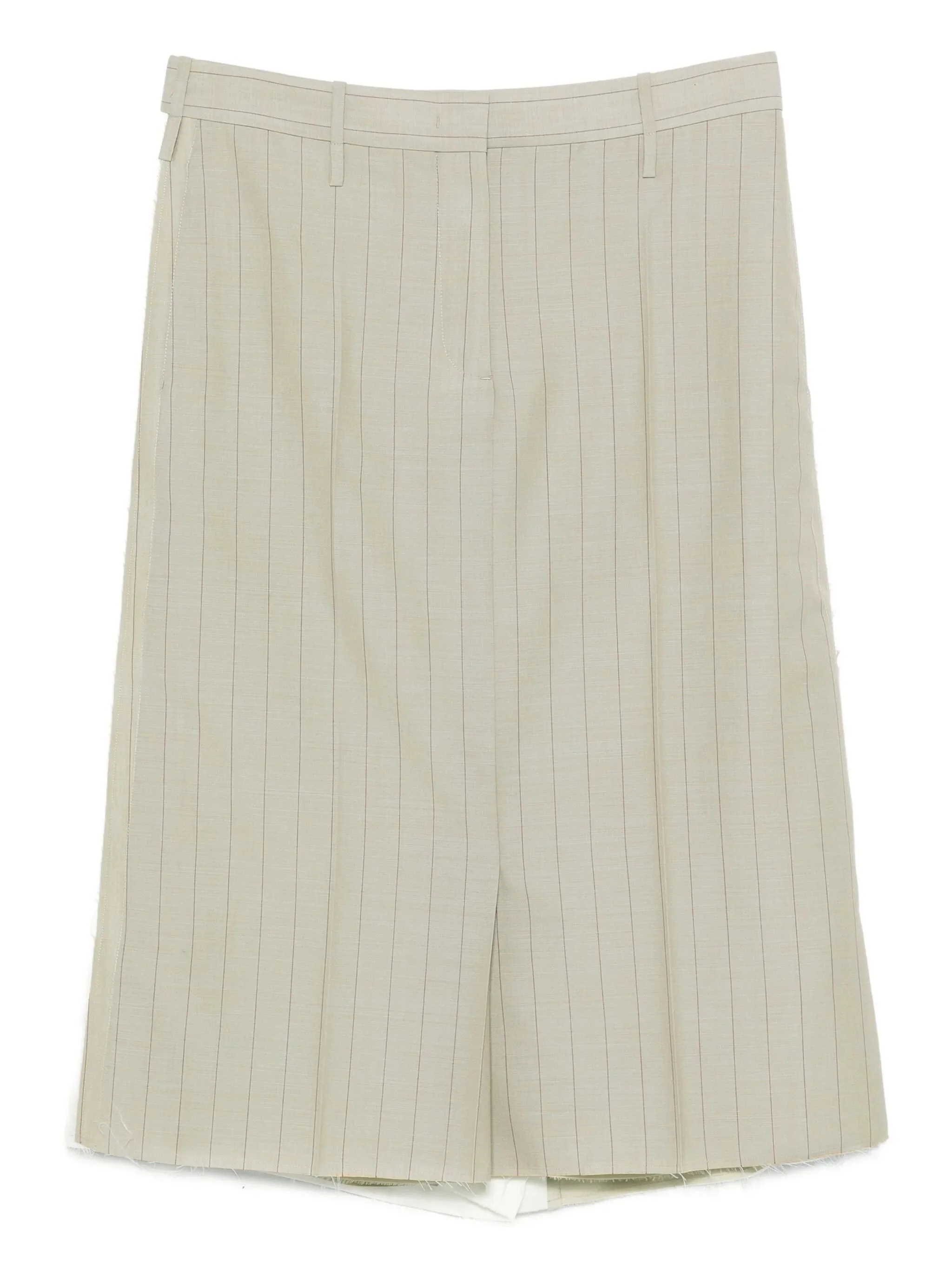 - beige - pinstripe pattern - frayed hem - straight skirt - high waist Materials & Product Care Lining: Cotton 100%, viscose 100% Outer: Mohair 25%, Wool 75% Size & Fit - The model is 1.79 m wearing size 36.