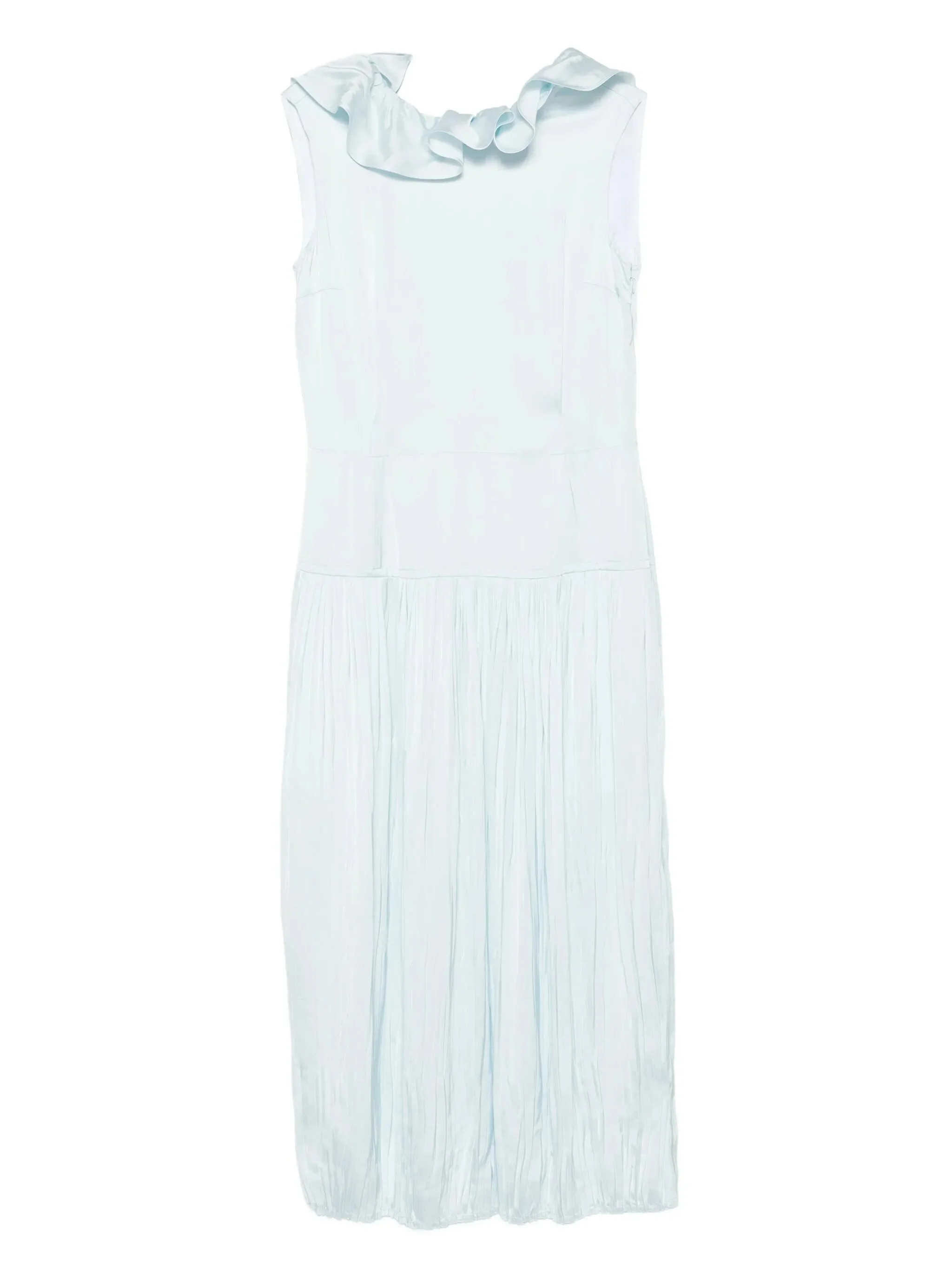 - sky blue - rear tie fastening - sleeveless - V-back - pleated skirt Materials & Product Care Lining: Elastane 5%, viscose 95% Outer: viscose 100% Size & Fit - The model is 1.78 m wearing size 36.