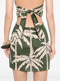 - forest green - halterneck tie fastening - rear tie fastening - rear elasticated waistband - palm tree print Materials & Product Care Cotton 100% Size & Fit - Designed for a slim fit that sits just away from the body offering a close yet comfortable fit - Made from a lightweight non-stretch fabric - The partially elasticated waistband offers increased movement and comfort at the waist - The model is 1.78 m wearing size 2.