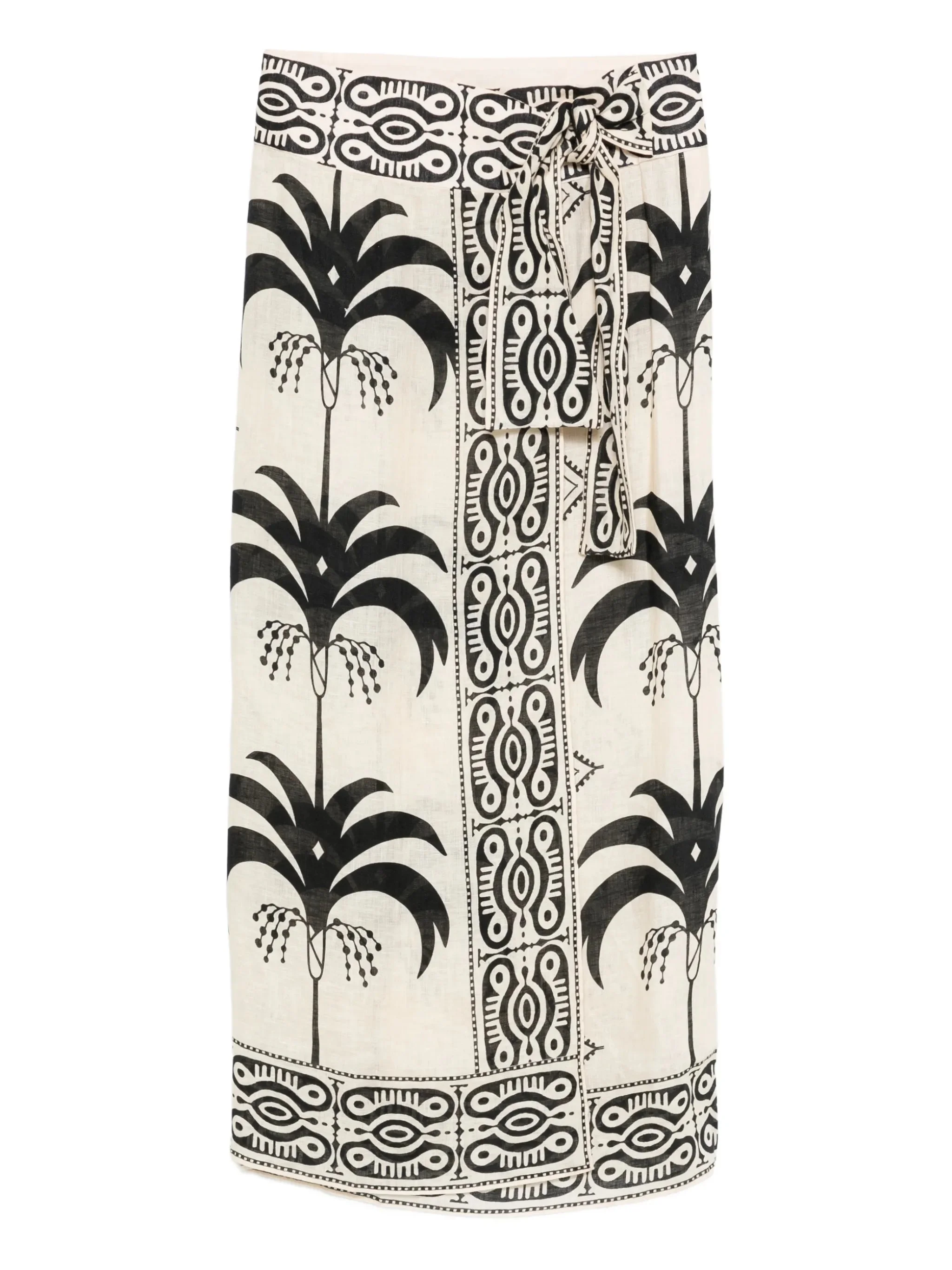 - beige/black - all-over graphic print - side tie fastening - mid-length Materials & Product Care Linen/Flax 100% Size & Fit - The model is 1.78 m wearing size 2.