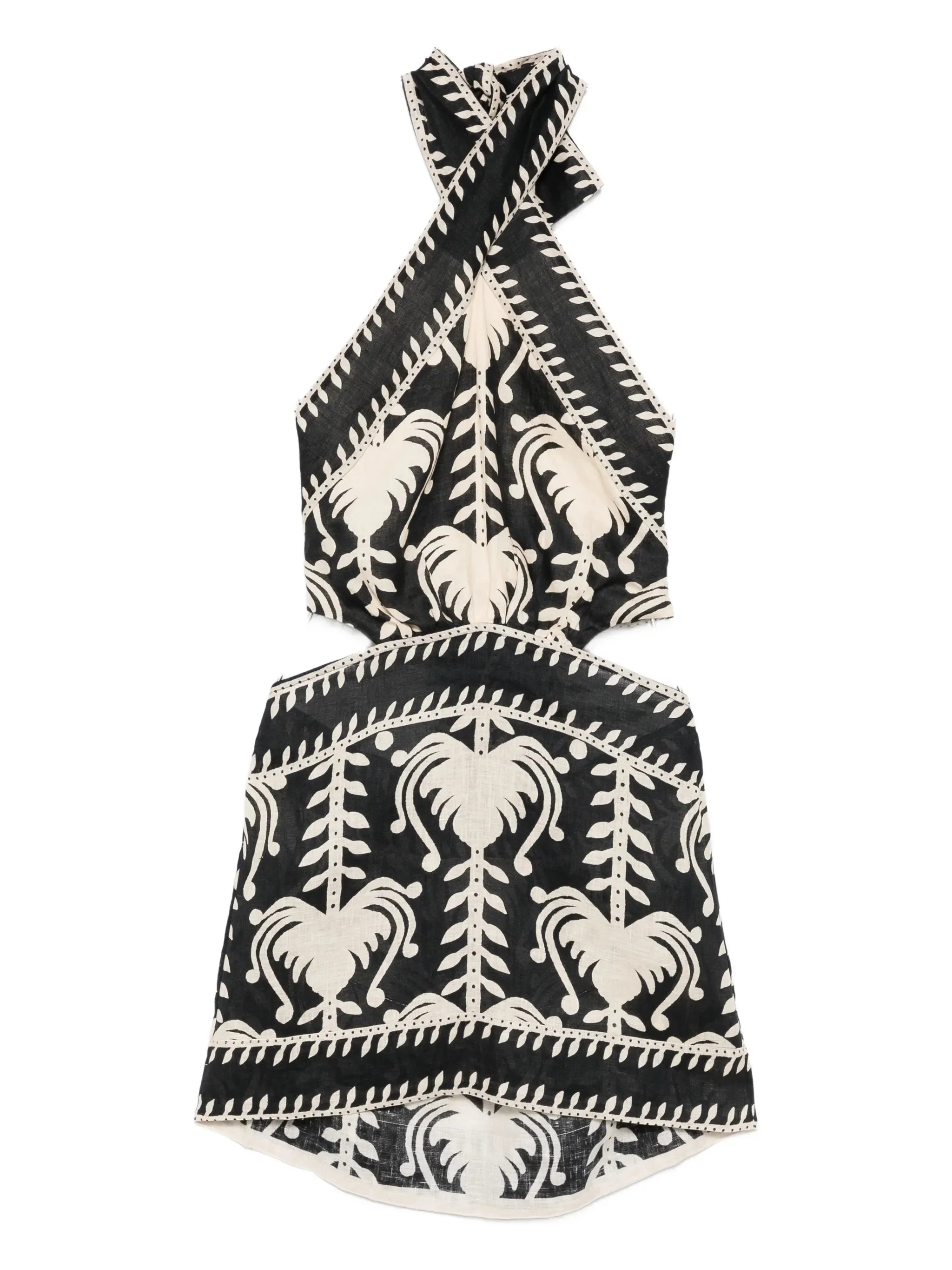 - black and ivory - graphic print - halterneck - cut-out detailing - mini length - sleeveless Materials & Product Care Linen/Flax 100% Size & Fit - The model is 1.78 m wearing size 2.