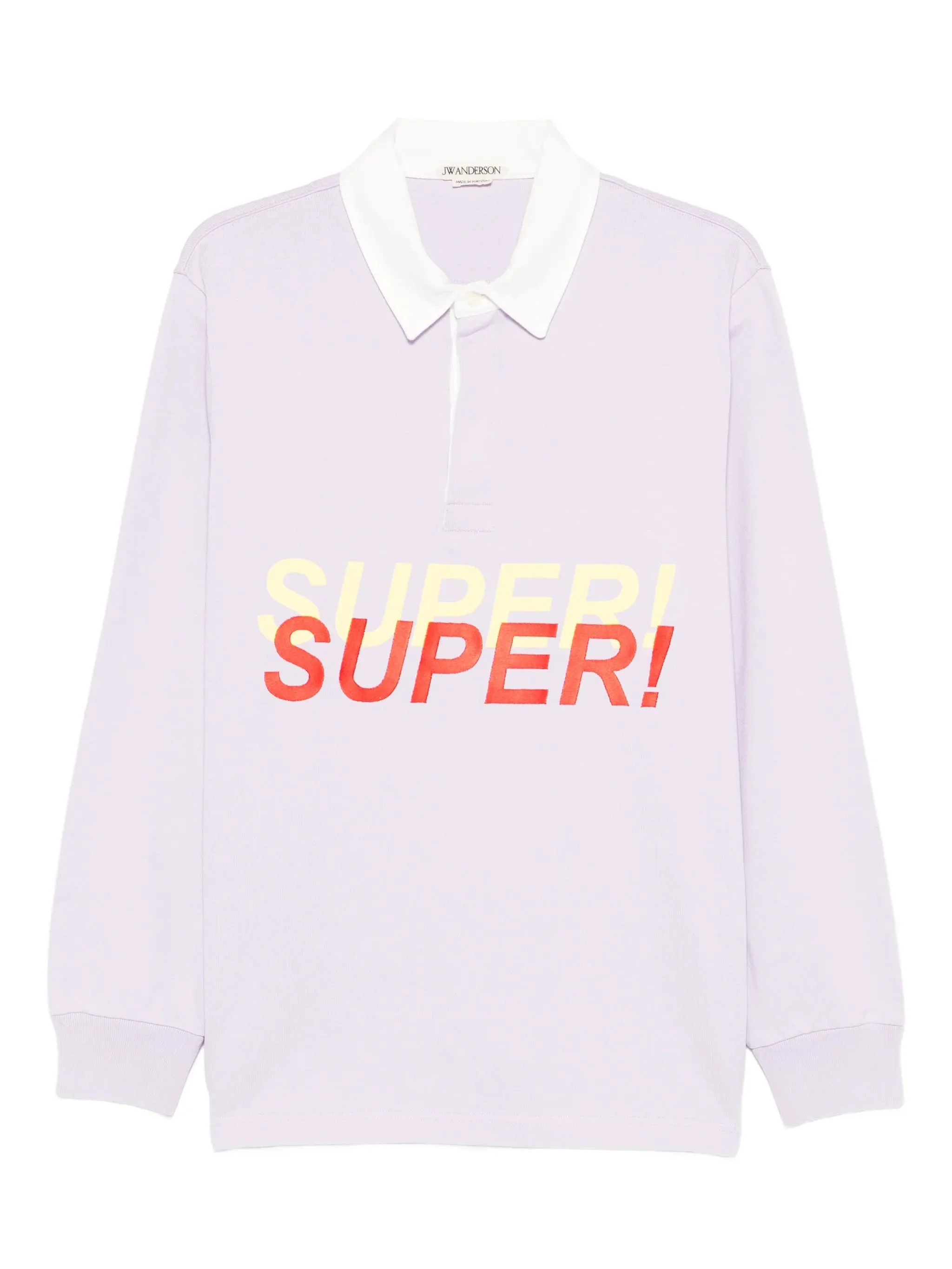 - purple - contrasting polo collar - long sleeves - front graphic print - front button placket - ribbed cuffs Materials & Product Care Cotton 100%