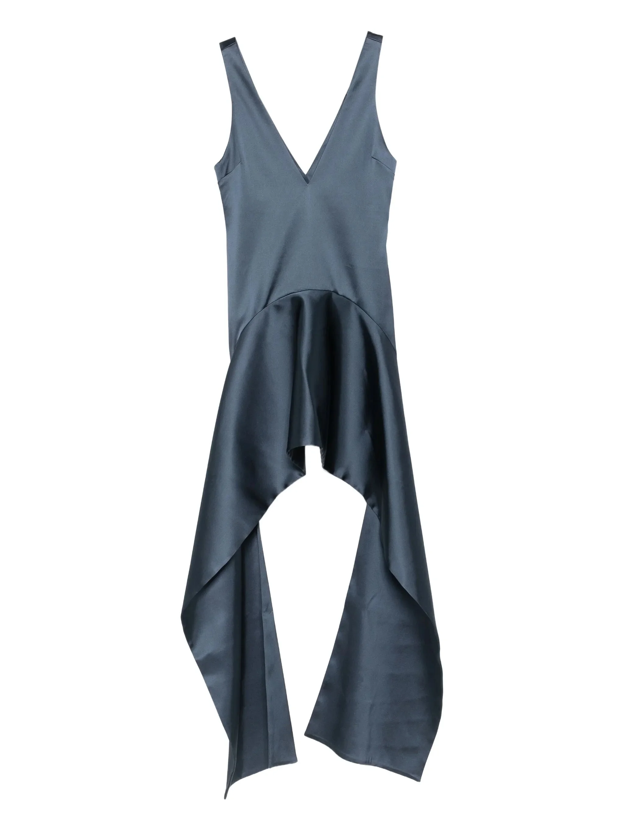 - steel blue - V-neck - sleeveless - draped hem - asymmetrical hem Materials & Product Care Lining: Polyester 100% Outer: Acetate 75%, Elastane 3%, Polyamide 22% Size & Fit - The model is 1.80 m wearing size 8.
