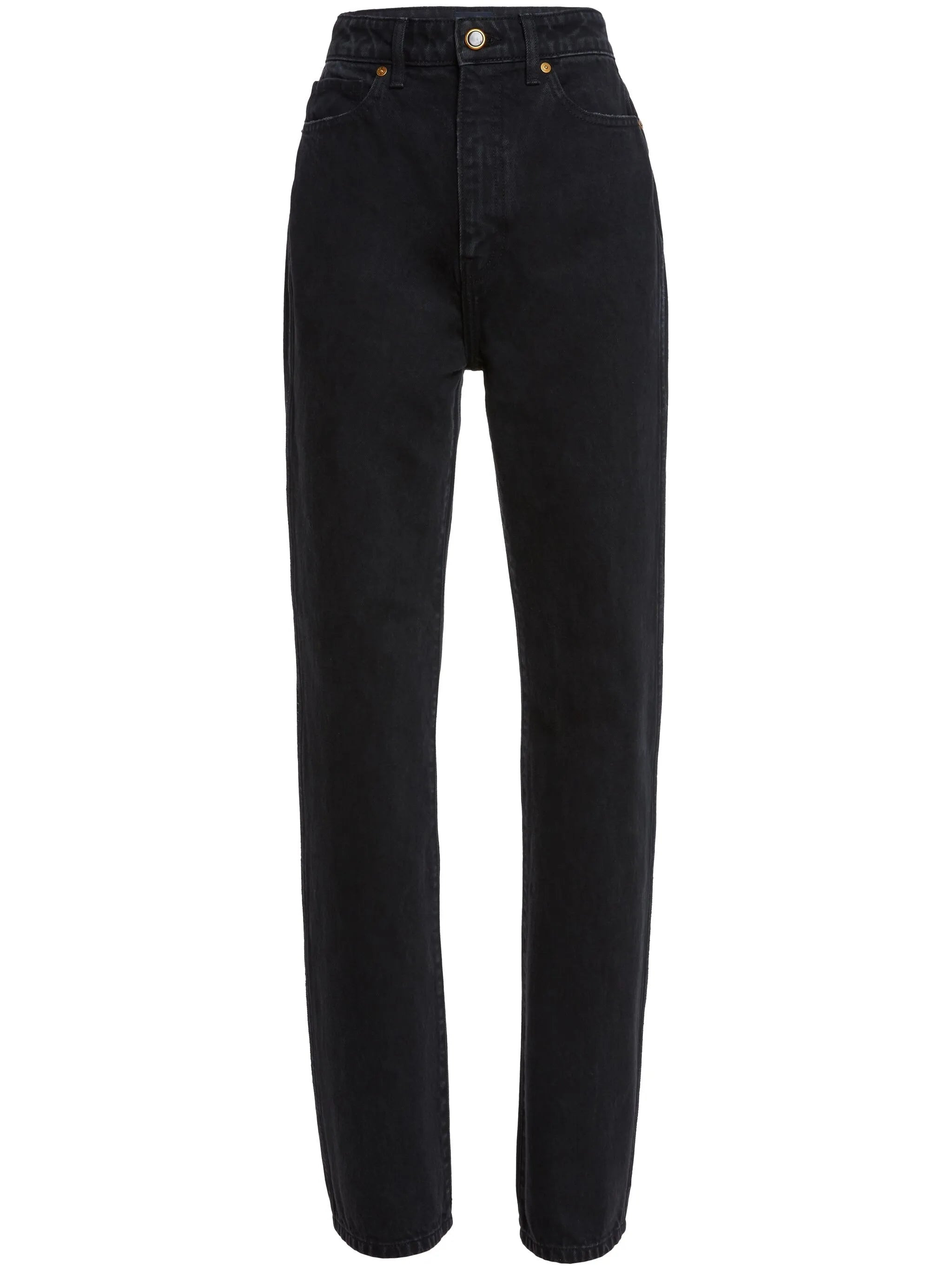 - black - cotton blend - denim - high-waisted - belt loops - concealed fly and button fastening - classic five pockets - straight leg Materials & Product Care Cotton 98%, Elastane 2%