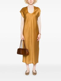 - caramel brown - satin finish - scoop neck - short sleeves - mid-length Materials & Product Care Silk 100% Size & Fit - Designed for a relaxed fit, this piece allows for comfort and movement when worn - Made from a lightweight non-stretch fabric - The model is 1.75 m wearing size S.
