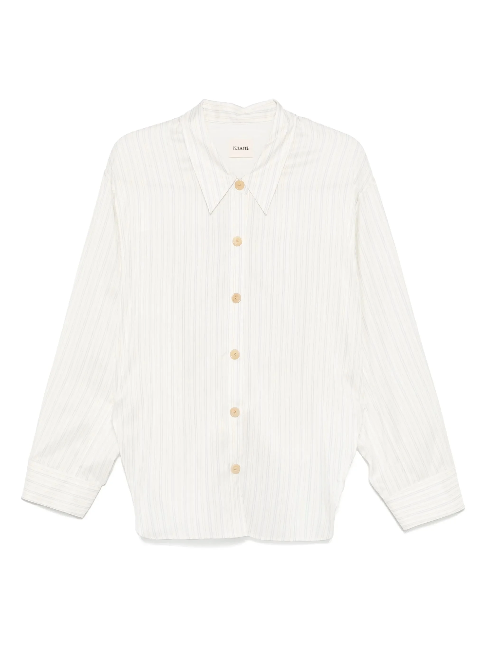 - white - front button fastening - side slits - buttoned cuffs - pinstripe pattern Materials & Product Care Lining: Silk 100% Outer: Silk 100% Size & Fit - Designed to be unstructured, offering a loose fit throughout - Made from a lightweight non-stretch fabric - The model is 1.80 m wearing size S.