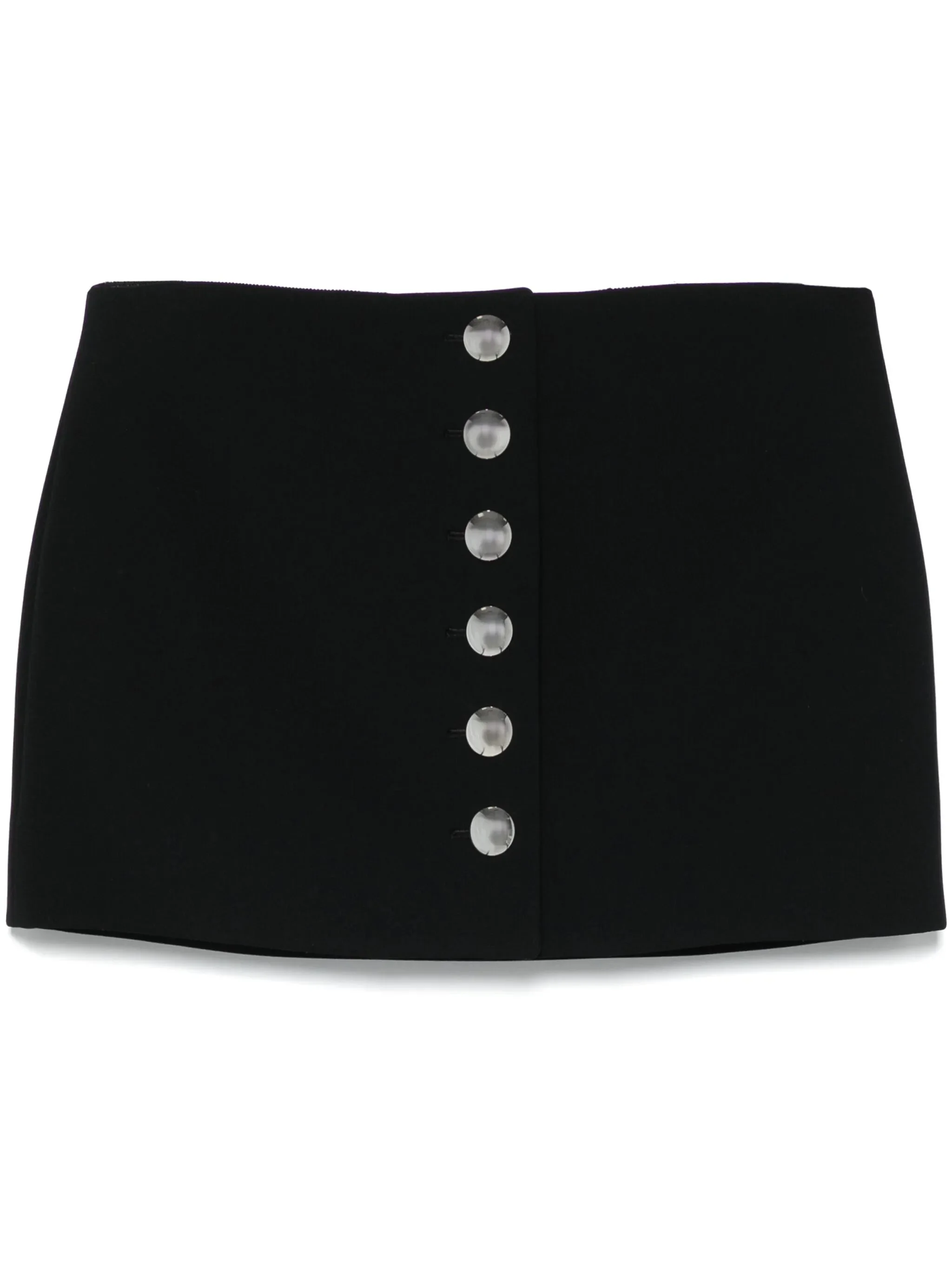 - black - front press-stud fastening - low-rise - straight hem - thigh-length Materials & Product Care Lining: Silk 100% Outer: Polyester 100% Size & Fit - Made from a midweight non-stretch fabric - This mini-length skirt is intended to be worn low on the hips - The model is 1.80 m wearing size 2.