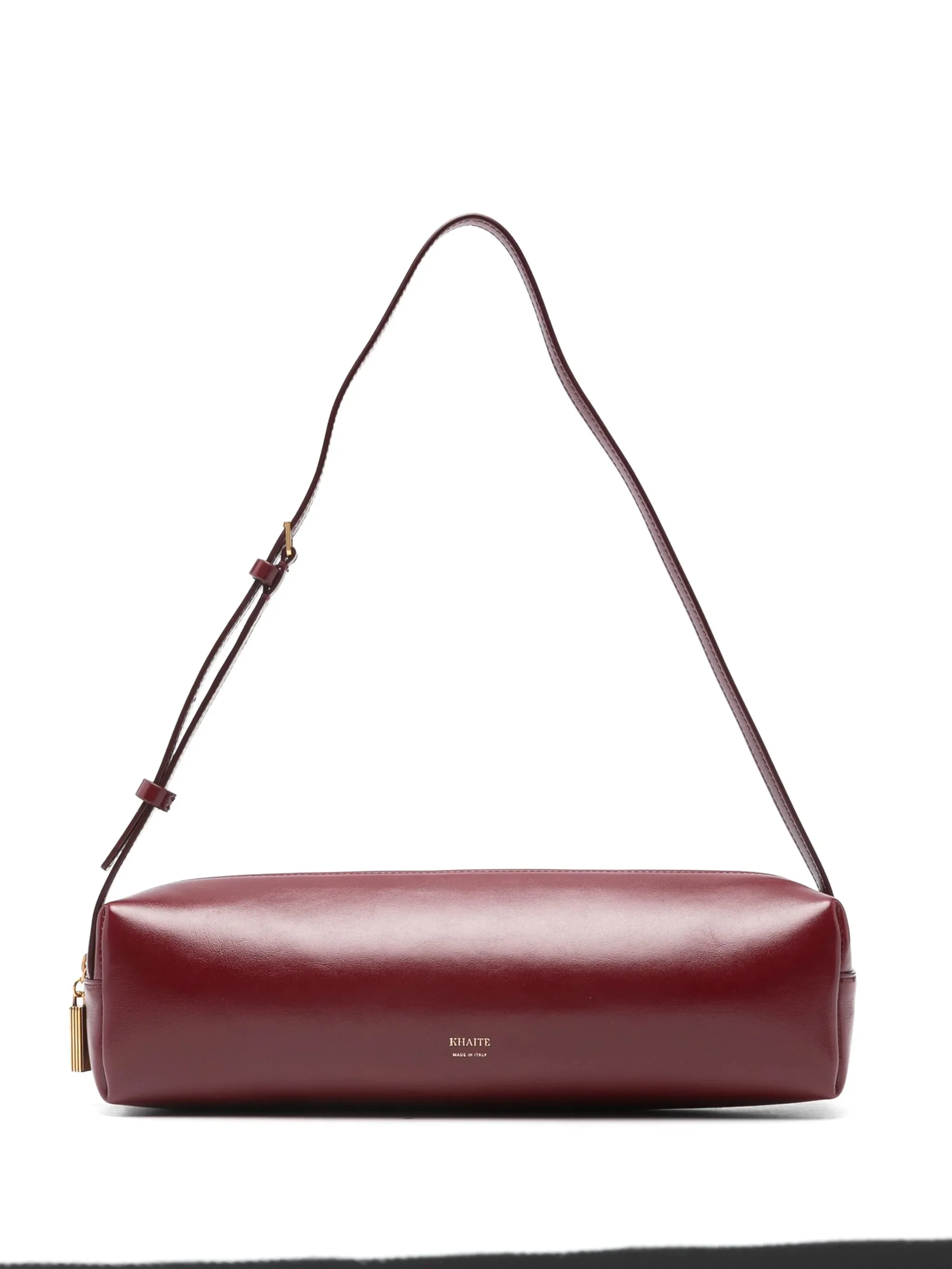 - burgundy - cylindrical shape - top zip fastening - adjustable shoulder strap - gold-tone hardware Materials & Product Care Outer: Calfskin 100% Size & Fit - The model is 1.76 m wearing size OS.