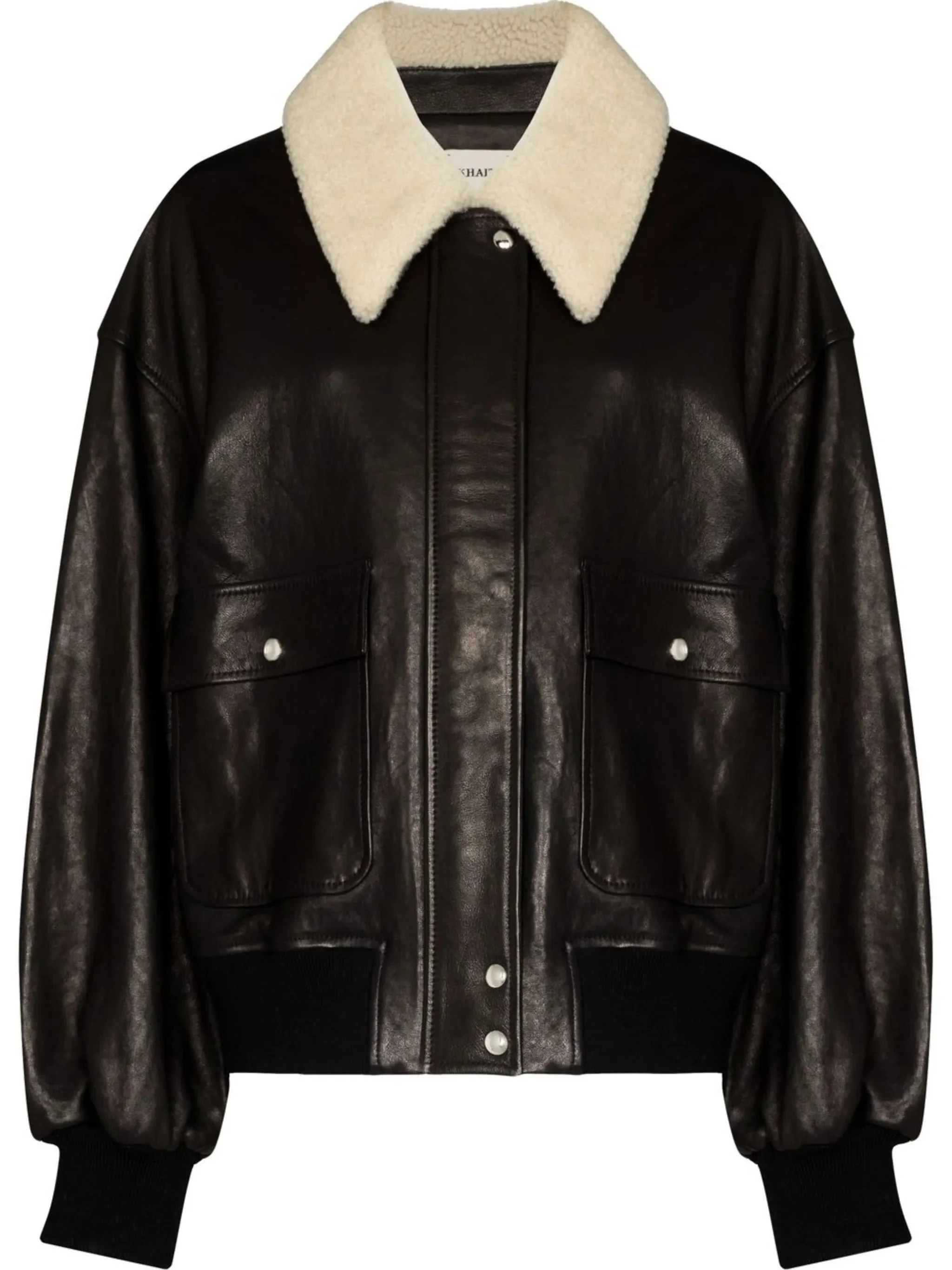 - black - polished finish - straight-point collar - shearling trim - long sleeves - concealed front fastening - two front flap pockets Materials & Product Care Lining: Cupro 100% Outer: Lambskin 100%, Wool 100% Size & Fit - The model is 1.75 m wearing size S.