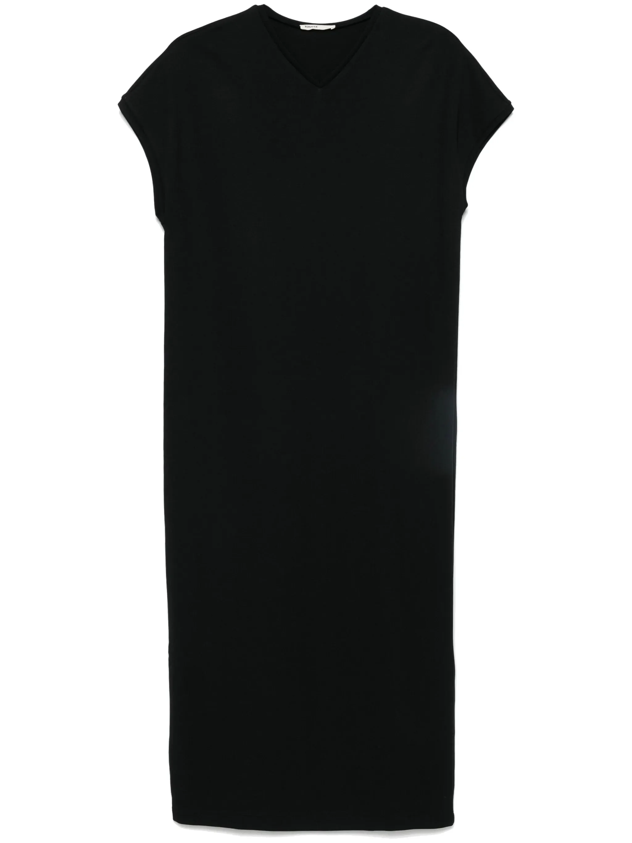 - black - unlined - V-neck - short sleeves - straight hem Materials & Product Care Elastane 6%, Polyamide 33%, viscose 61% Size & Fit - Designed to be unstructured, offering a loose fit throughout - Made from a midweight stretch fabric, this piece offers elasticity and flexibility when worn - The model is 1.77 m wearing size S.