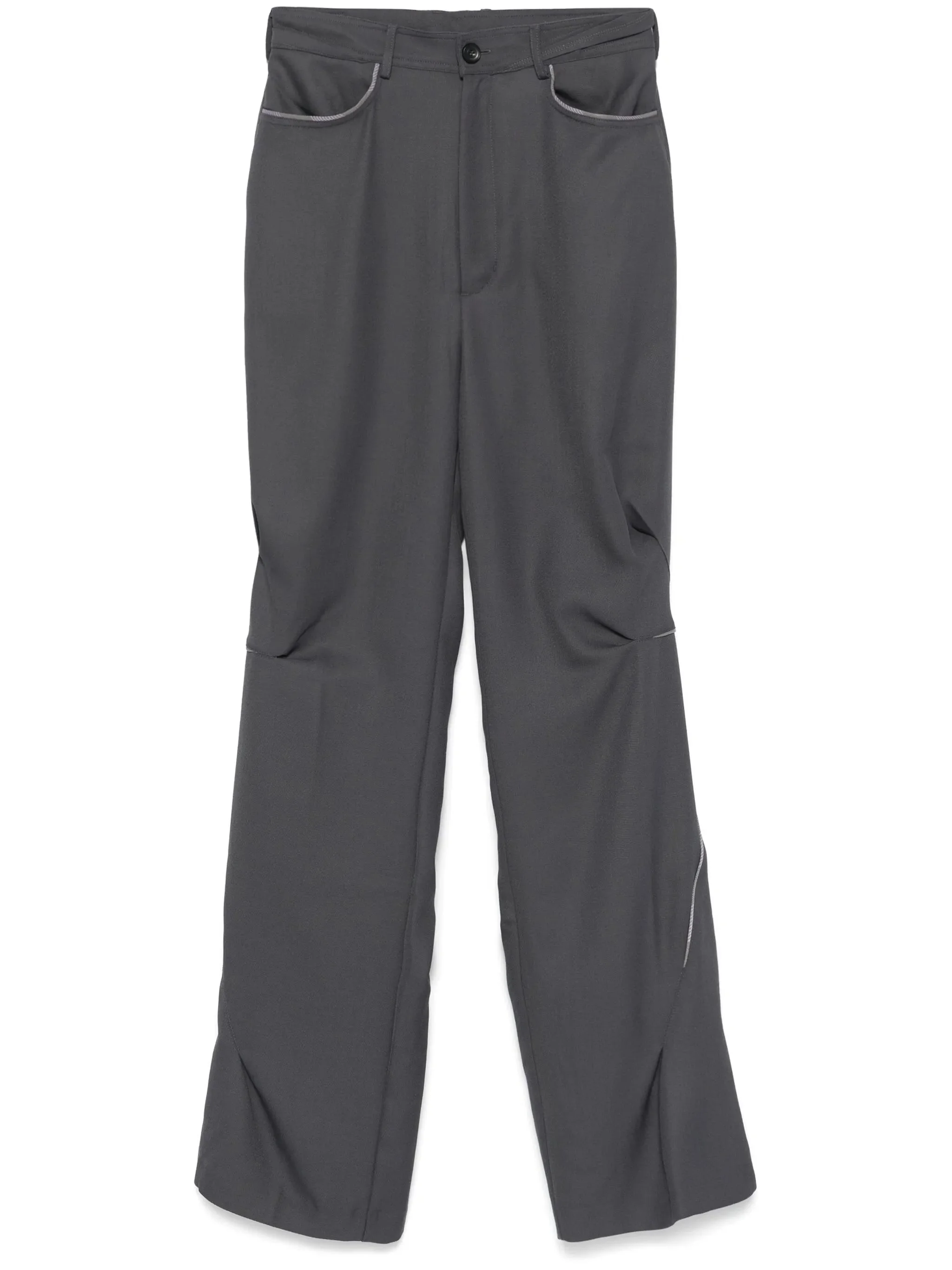 - medium grey - waffle effect - concealed fly and button fastening - belt loops - two front pouch pockets - two rear welt pockets - gathered detailing - pressed crease - contrasting trim - flared Materials & Product Care Lining: Cotton 35%, Polyester 65% Outer: Polyester 55%, Wool 45% Size & Fit - Designed for a straight-leg, allowing for an unrestricted and comfortable fit over the leg - Made from a midweight non-stretch fabric - The model is 1.87 m wearing size 48.