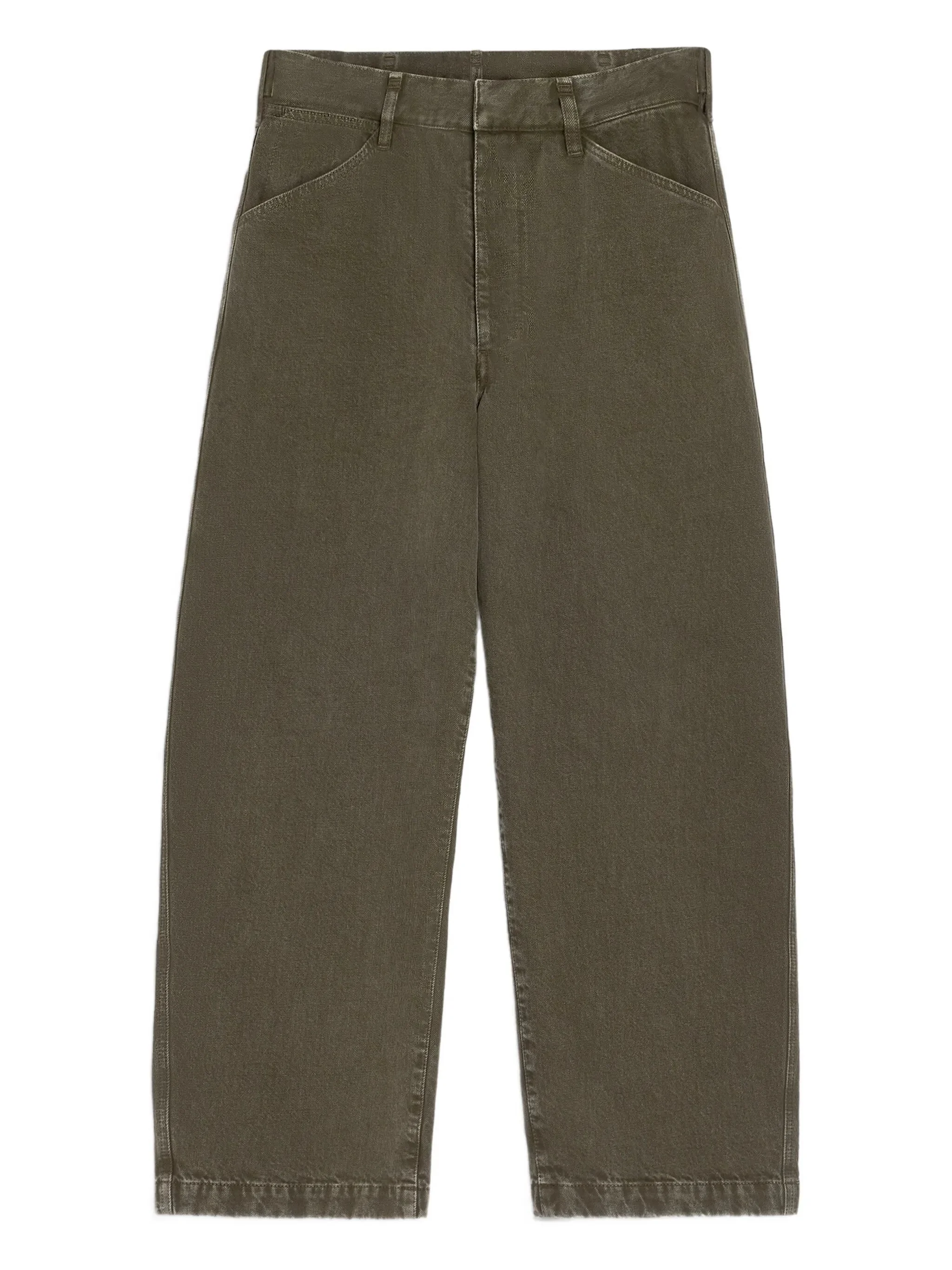 - moss green - heavy denim - piece-dyed - adjustable waistband - metal buckles - front welt pockets Materials & Product Care Denim 100%